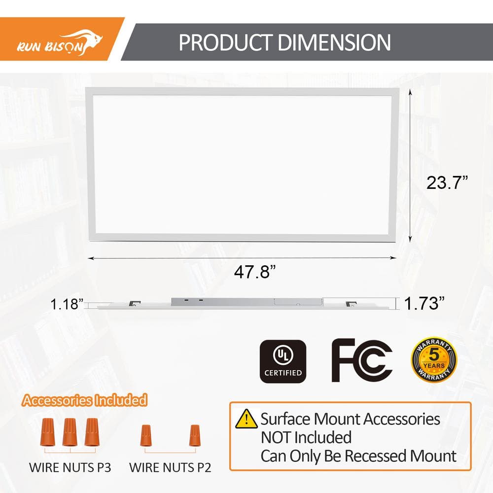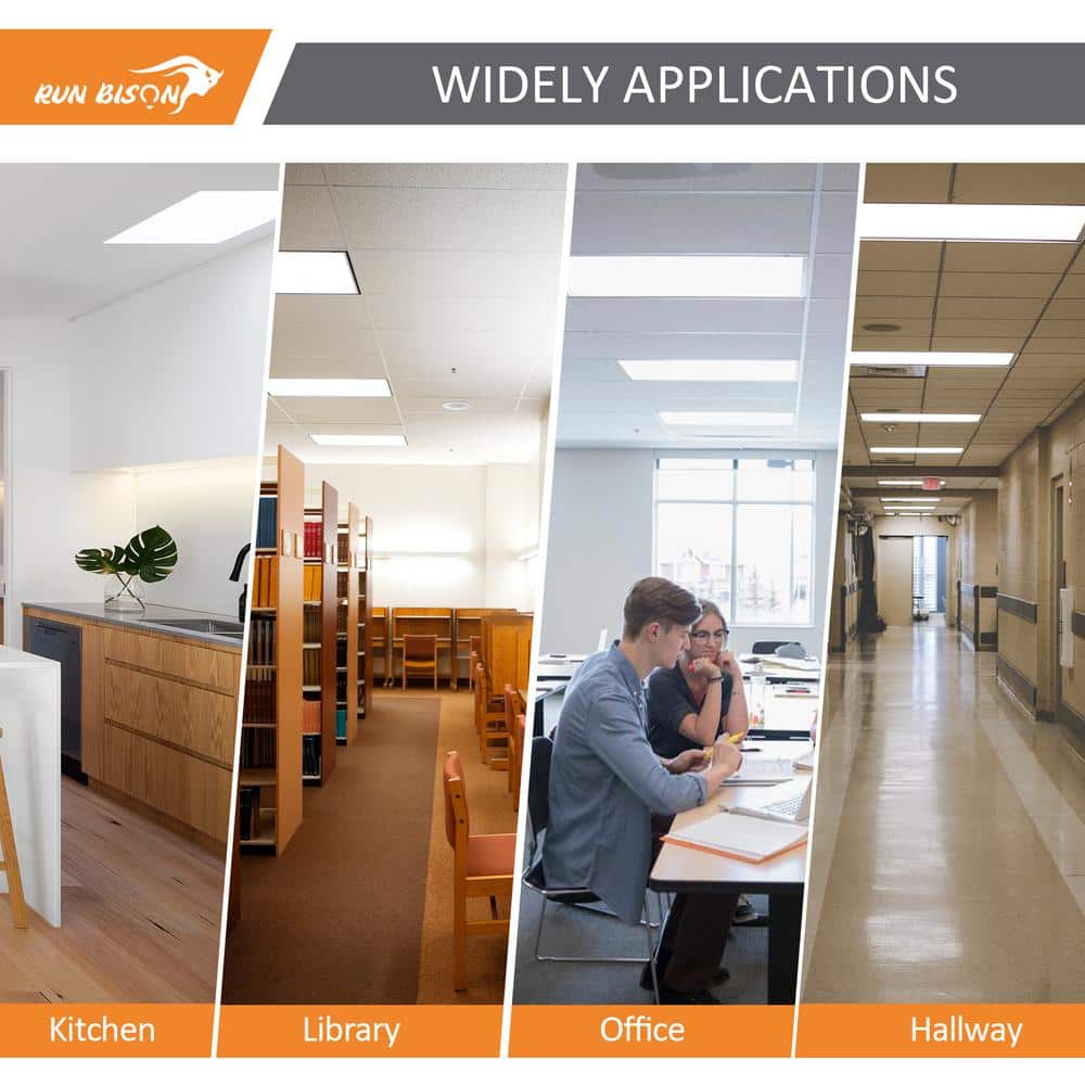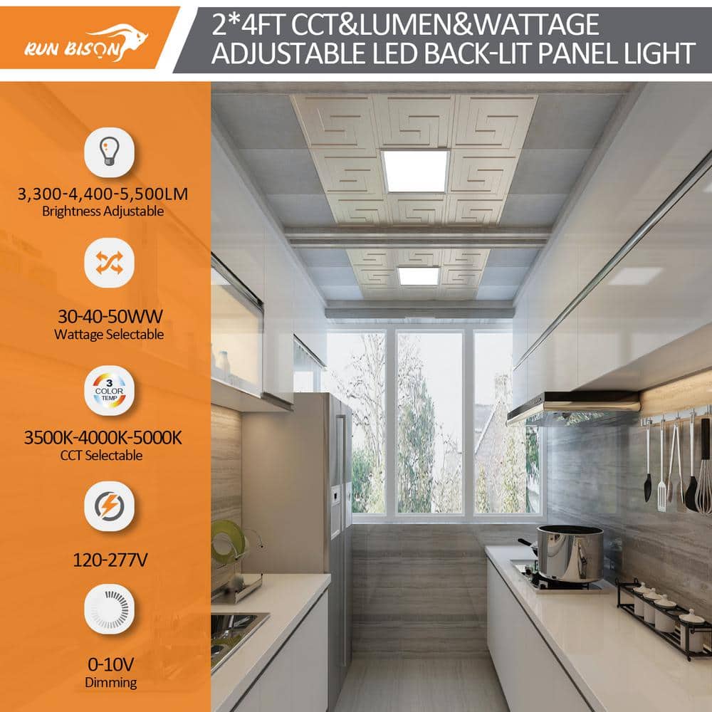 RUN BISON 2 ft. x 4 ft. White Integrated LED Flat Panel Troffer Light Fixture at 5500 Lumens, 3500/4000/5000K Selectable (4-Pack)