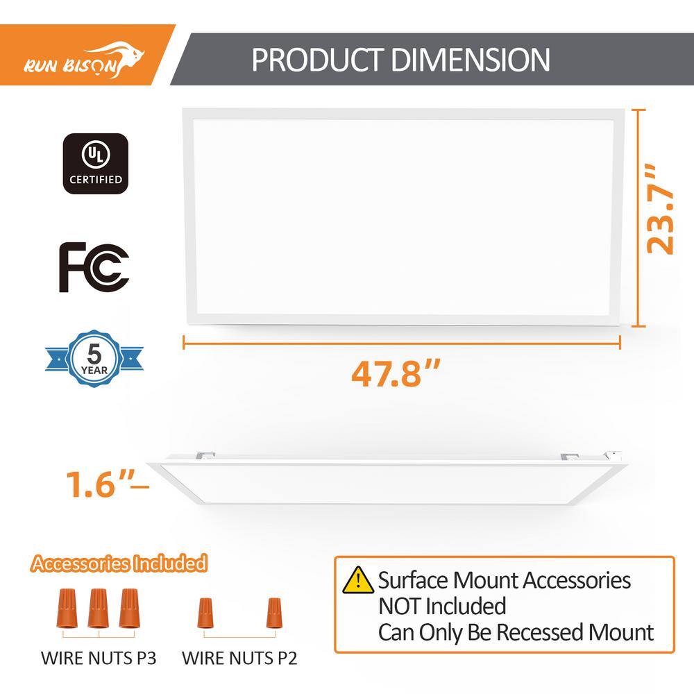 RUN BISON 2-PACK 4 ft. x 2 ft. Dimmable White CCT And Wattage Selectable Integrated LED Back-Lit Panel Light,3300-4400-5500Lumens