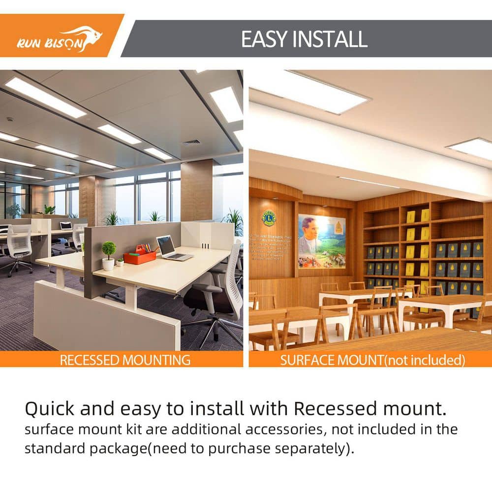 Illuminate your workspace with the RUN BISON Dimmable LED Panel Light, offering adjustable wattage and color temperatures to suit different environments. This energy-efficient lighting solution replaces traditional linear fluorescent fixtures, eliminating maintenance and reducing energy costs.