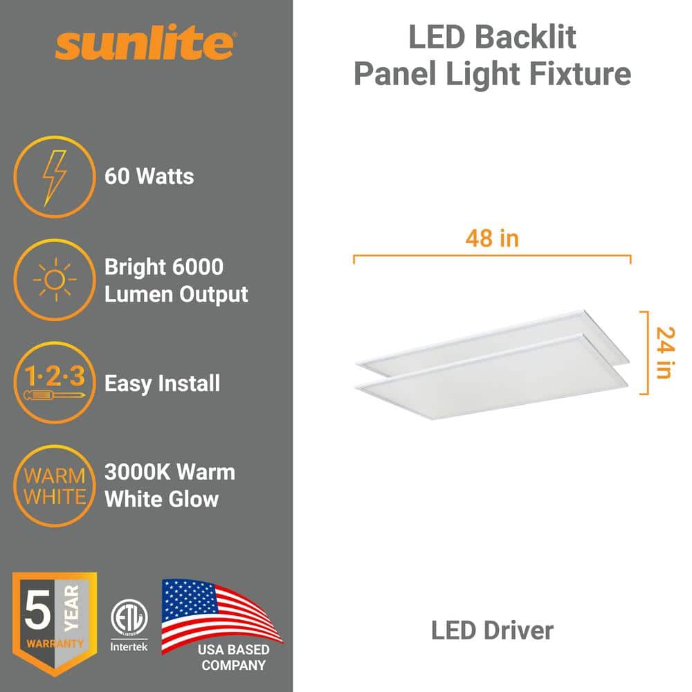 Sunlite 2 ft. x 4 ft. 390 Watt-Equivalent 6000 Lumens Lay In Dimmable Integrated LED Flat Panel Light 3000K (2-Pack)