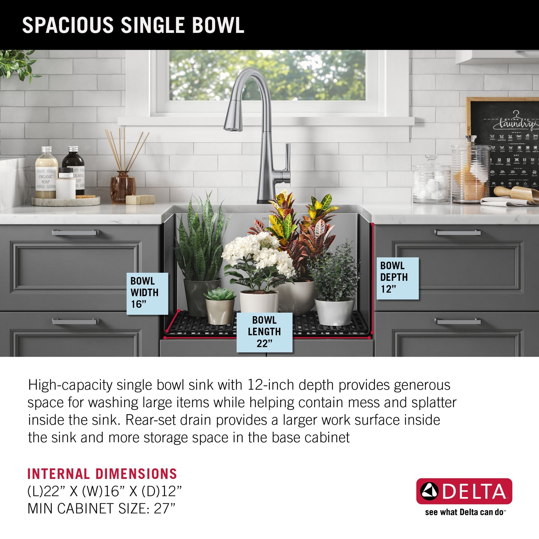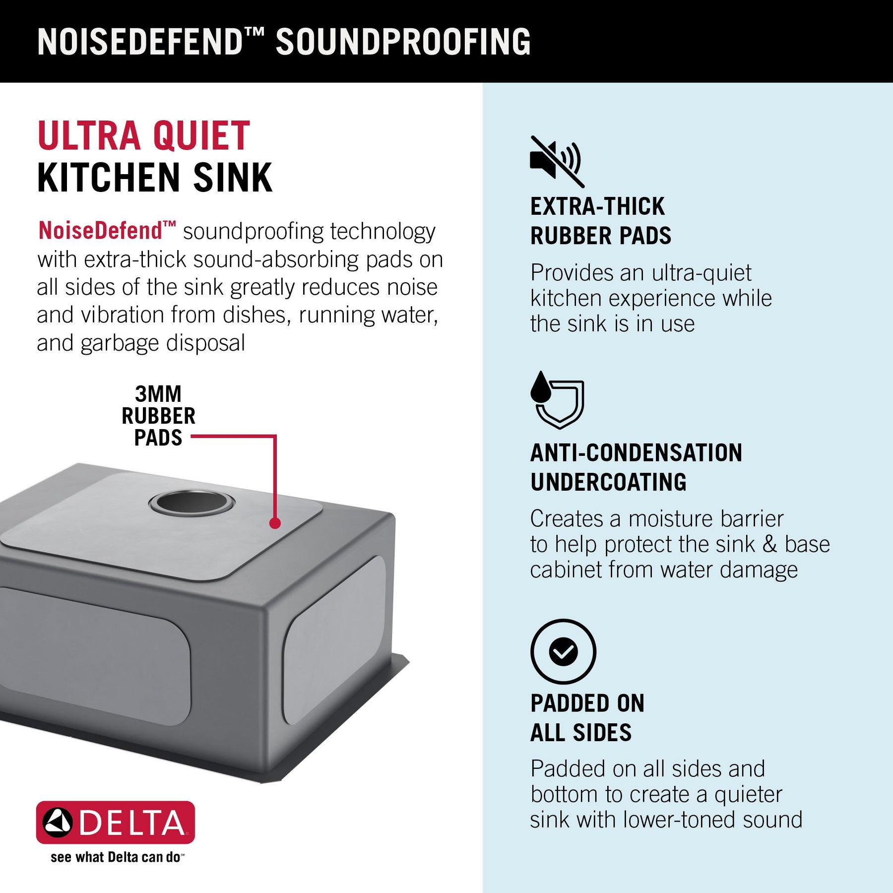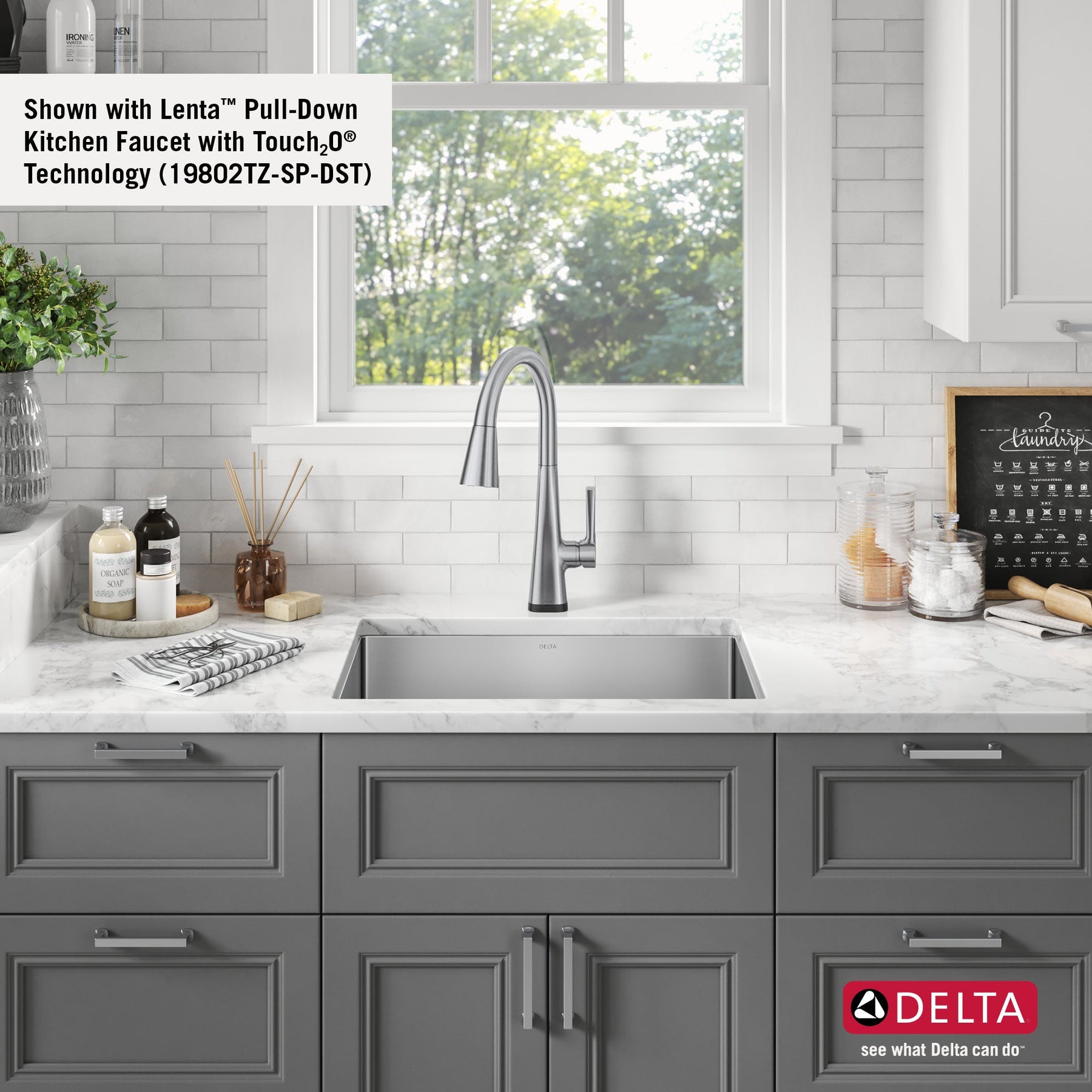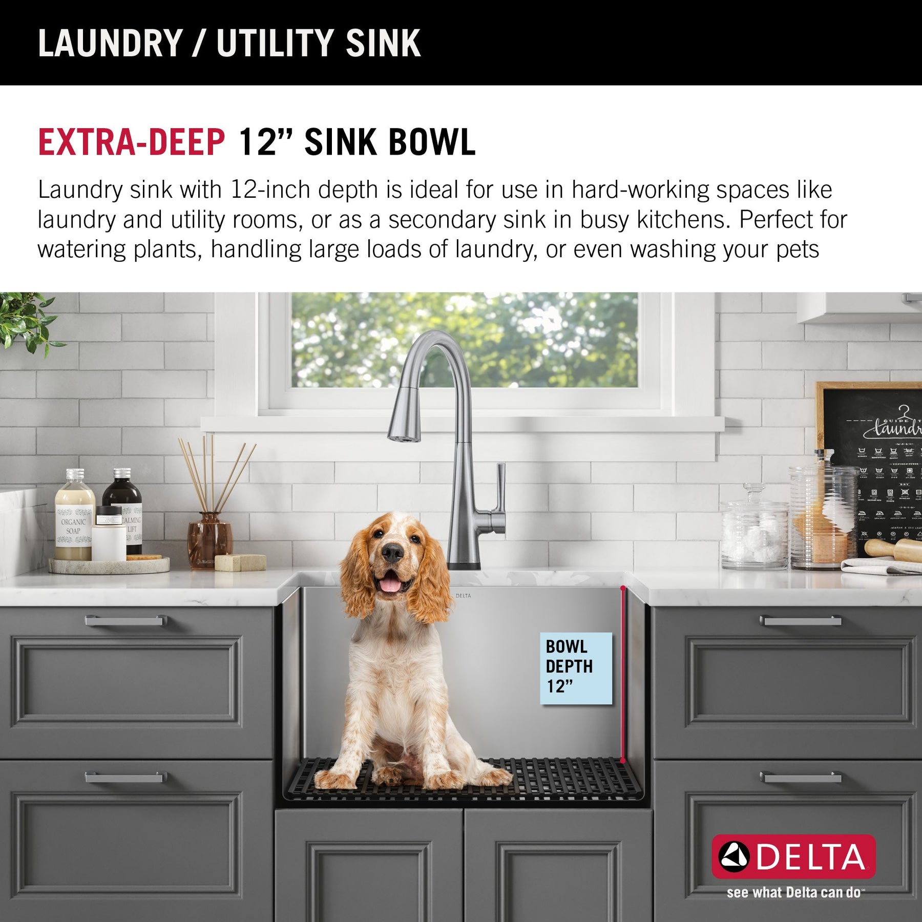 Enhance your utility space with Delta's stainless steel undermount laundry sink. This robust sink offers a contemporary design with clean lines and a seamless installation, perfect for any laundry or utility room. Featuring TRU16 gauge stainless steel, it's built to withstand heavy-duty use while maintaining a sleek, easy-to-clean finish.