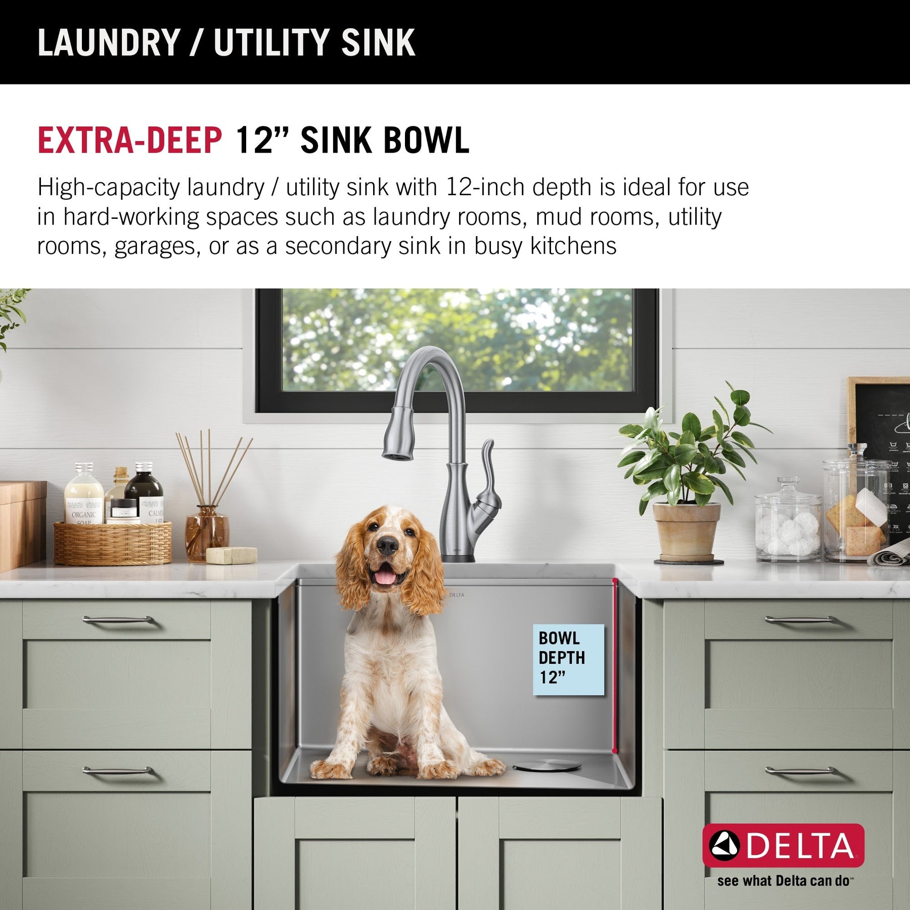 Upgrade your utility room with the Delta Stainless Steel Undermount Sink and enjoy a blend of elegance and efficiency today!