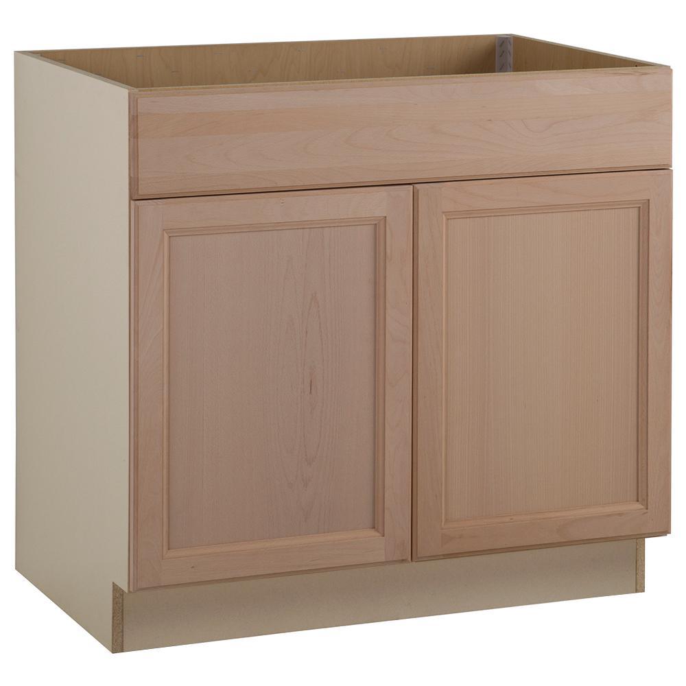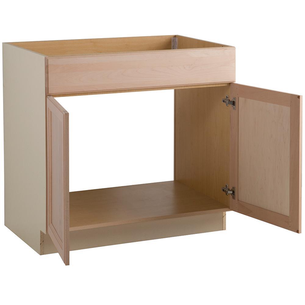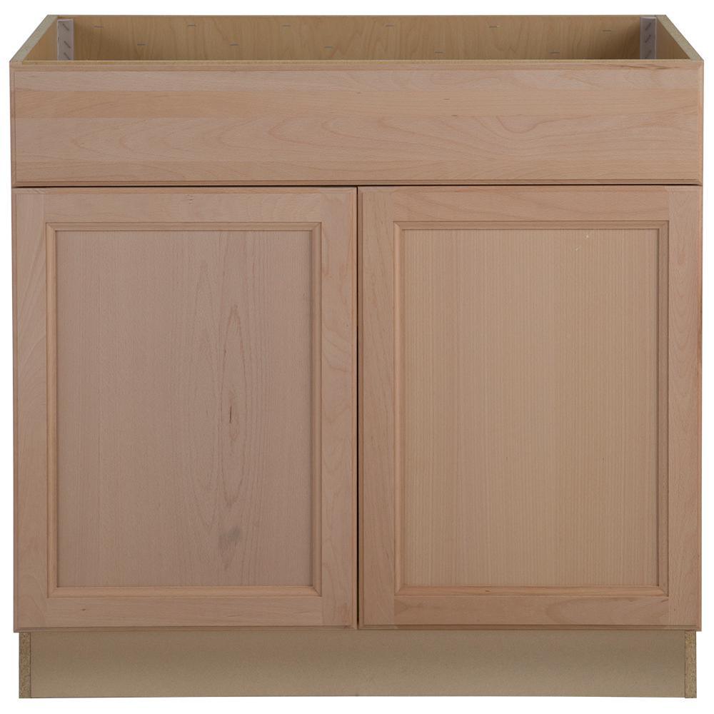 Conveying a transitional/classical look that is sure to evoke a timeless appearance, the Easthaven 36 in. Assembled sink base cabinet is beautifully crafted with 2 recessed veneer panel doors. The Easthaven collections unfinished exterior offers you the opportunity to paint or stain the cabinet to the color of your liking in order to perfectly match your home decor. Including a full overlay door style, the base cabinet is fully Assembled making it easy for you to build the kitchen, bathroom, laundry room or office of your dreams.