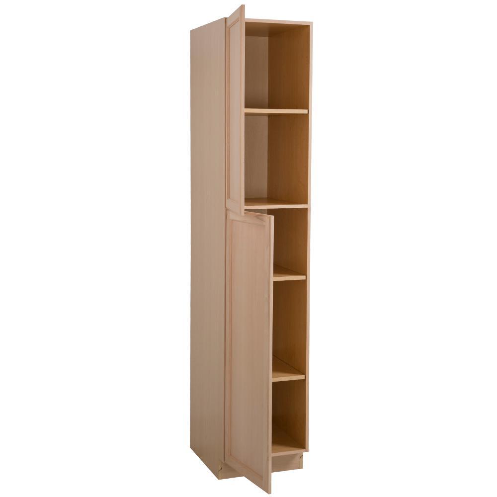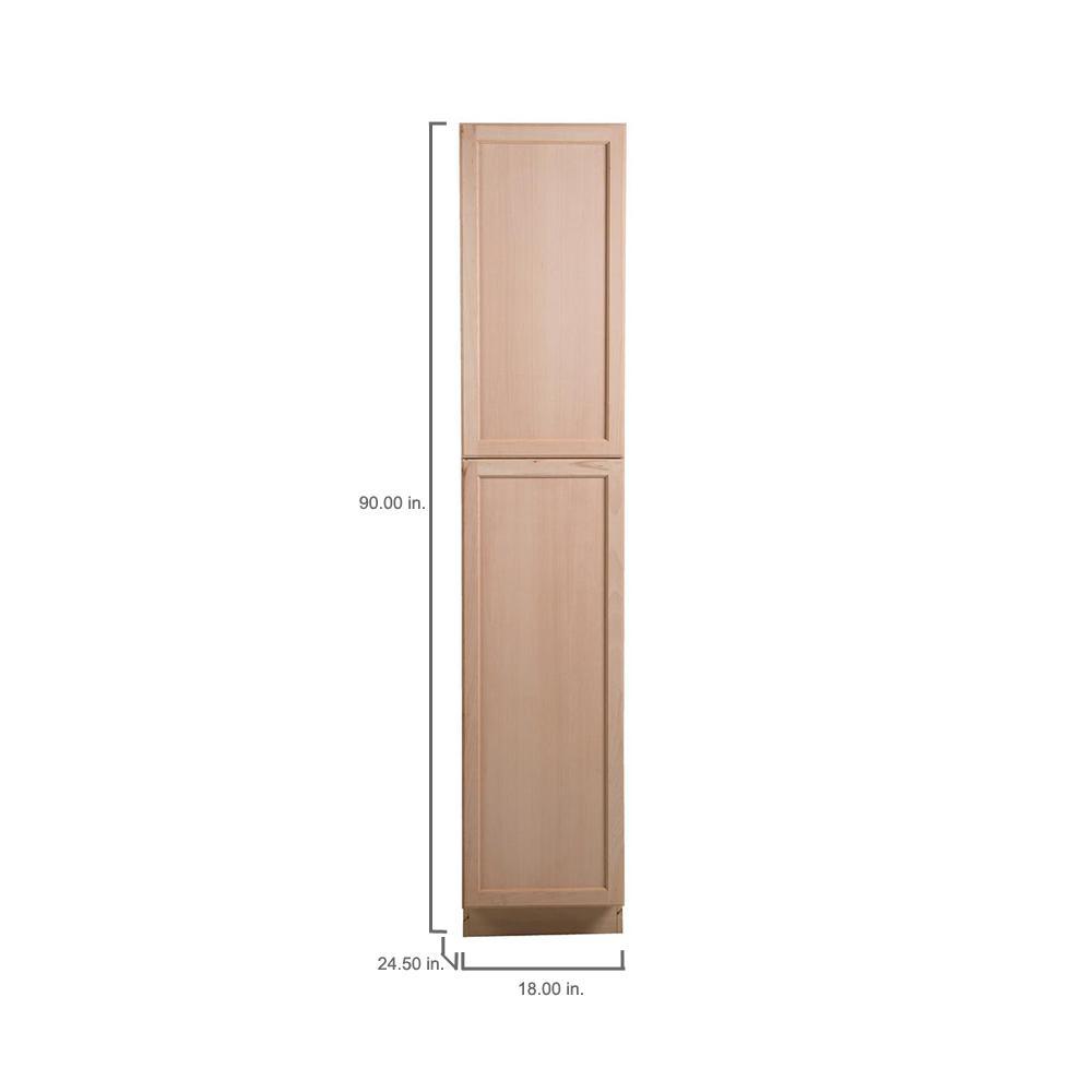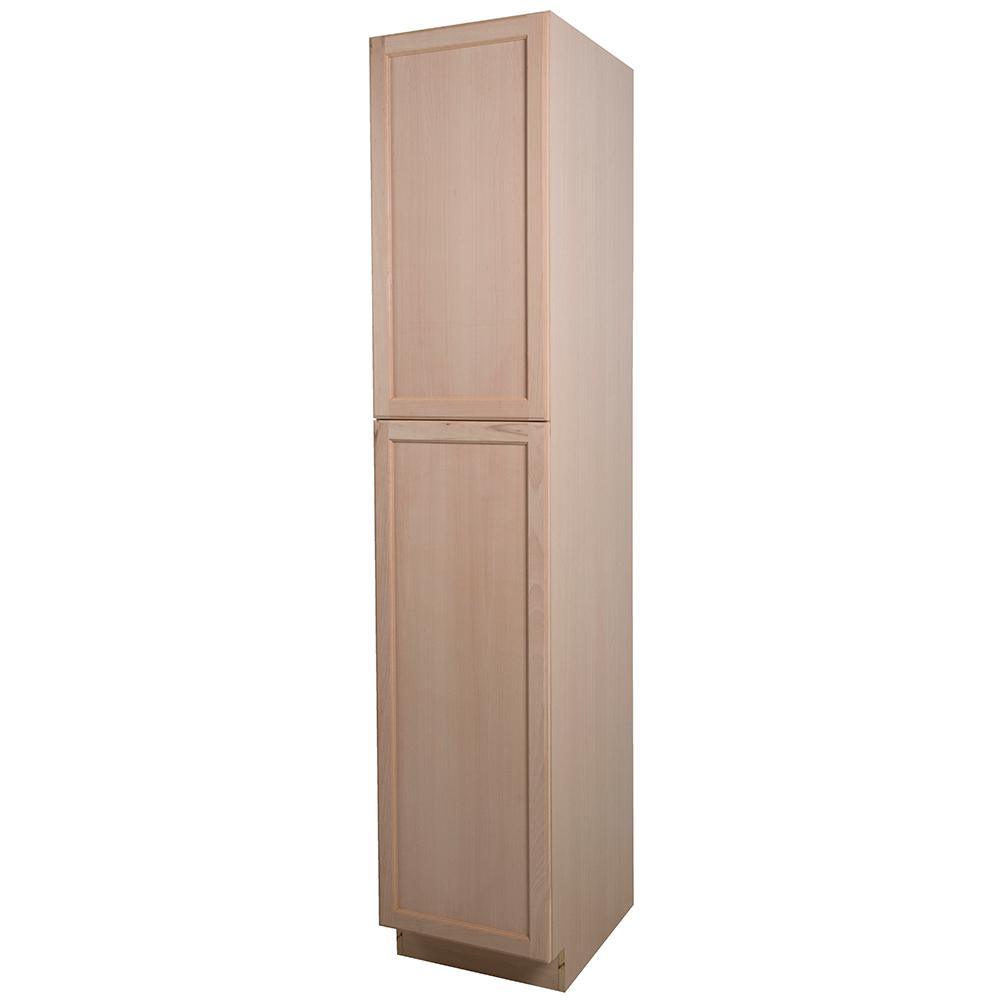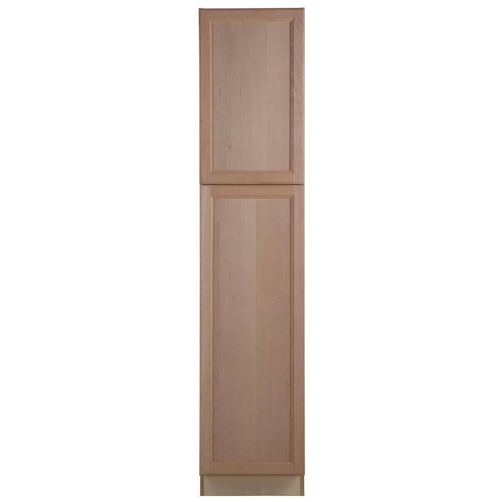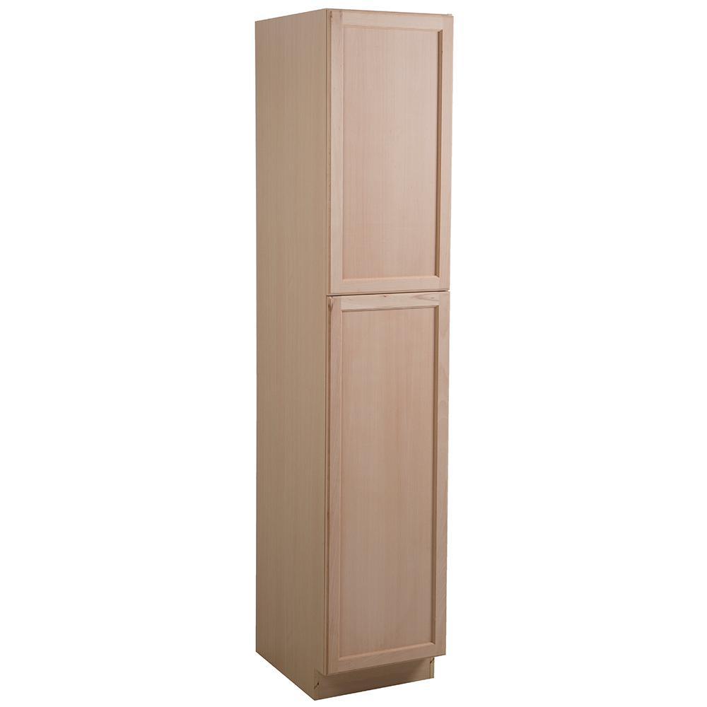 Conveying a transitional/classical look that is sure to evoke a timeless appearance, the Easthaven 18 in. W assembled pantry cabinet is beautifully crafted with 2 recessed veneer panel doors. The Easthaven collections unfinished exterior offers you the opportunity to paint or stain the cabinet to the color of your liking in order to perfectly match your home decor. Including a full overlay door style, the pantry cabinet is fully assembled making it easy for you to build the kitchen, bathroom, laundry room, or office of your dreams.