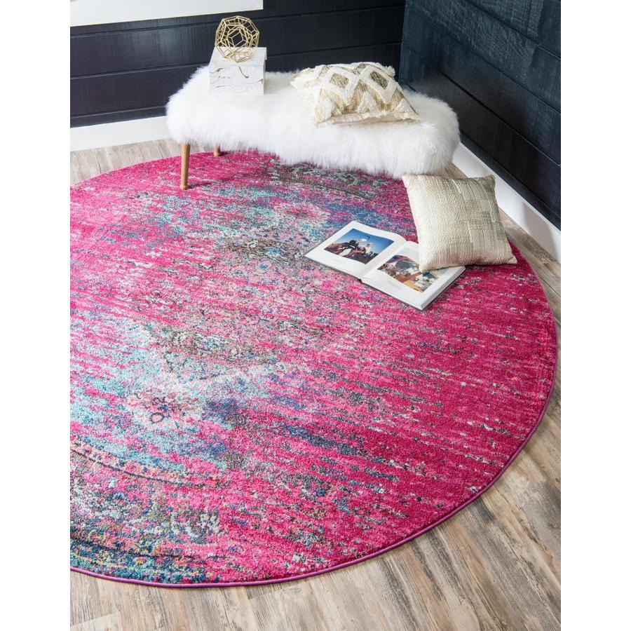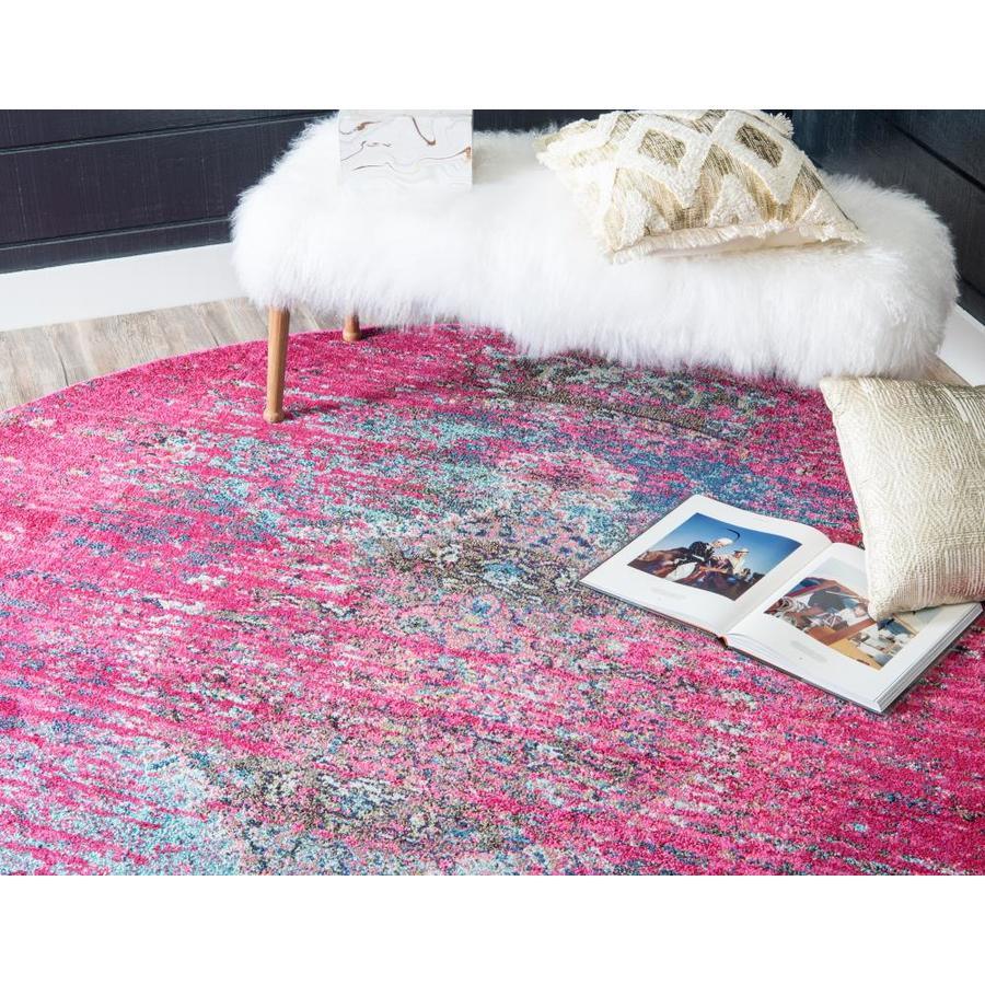 Unique Loom Warhol Vita 4 x 4 Fuchsia/Light Blue Round Indoor Medallion Oriental Area Rug