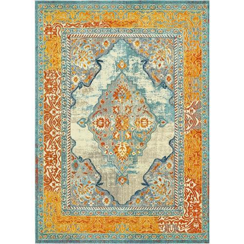 Unique Loom Da Vinci Vita 9 x 12 Blue/Orange Indoor Medallion Oriental Area Rug
