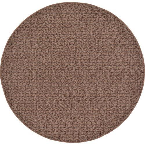 Unique Loom Links Outdoor 6 x 6 Brown/Black Round Indoor/Outdoor Stripe French Country Area Rug