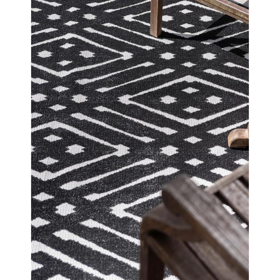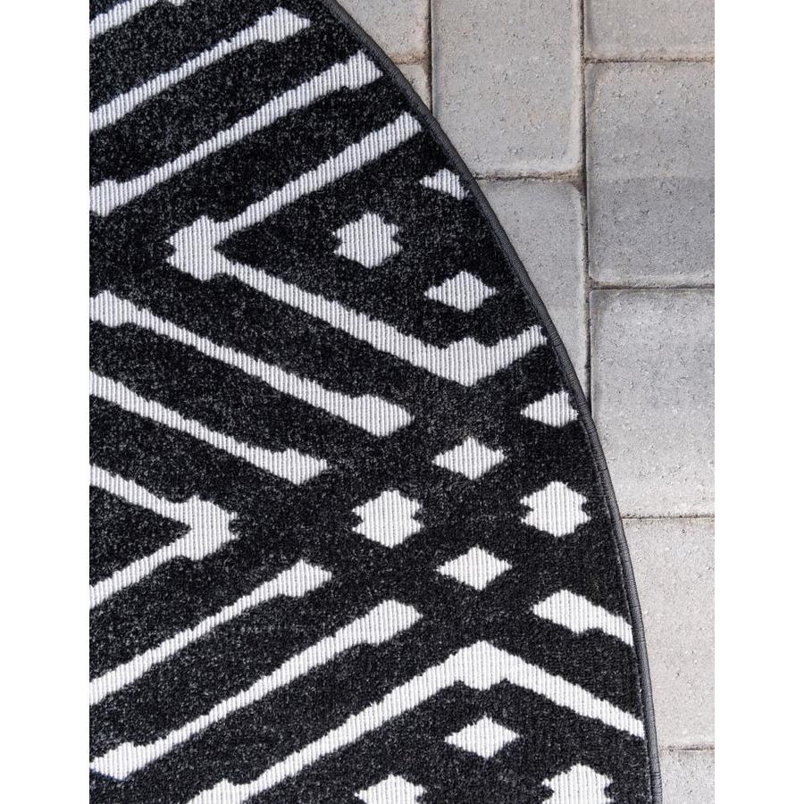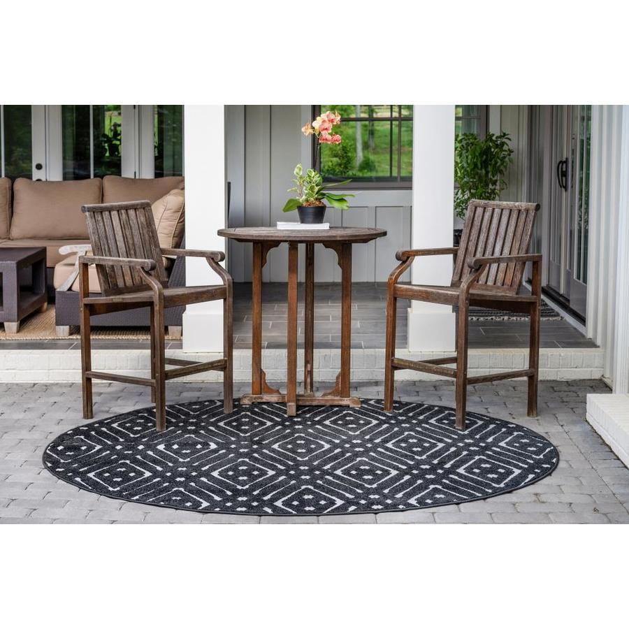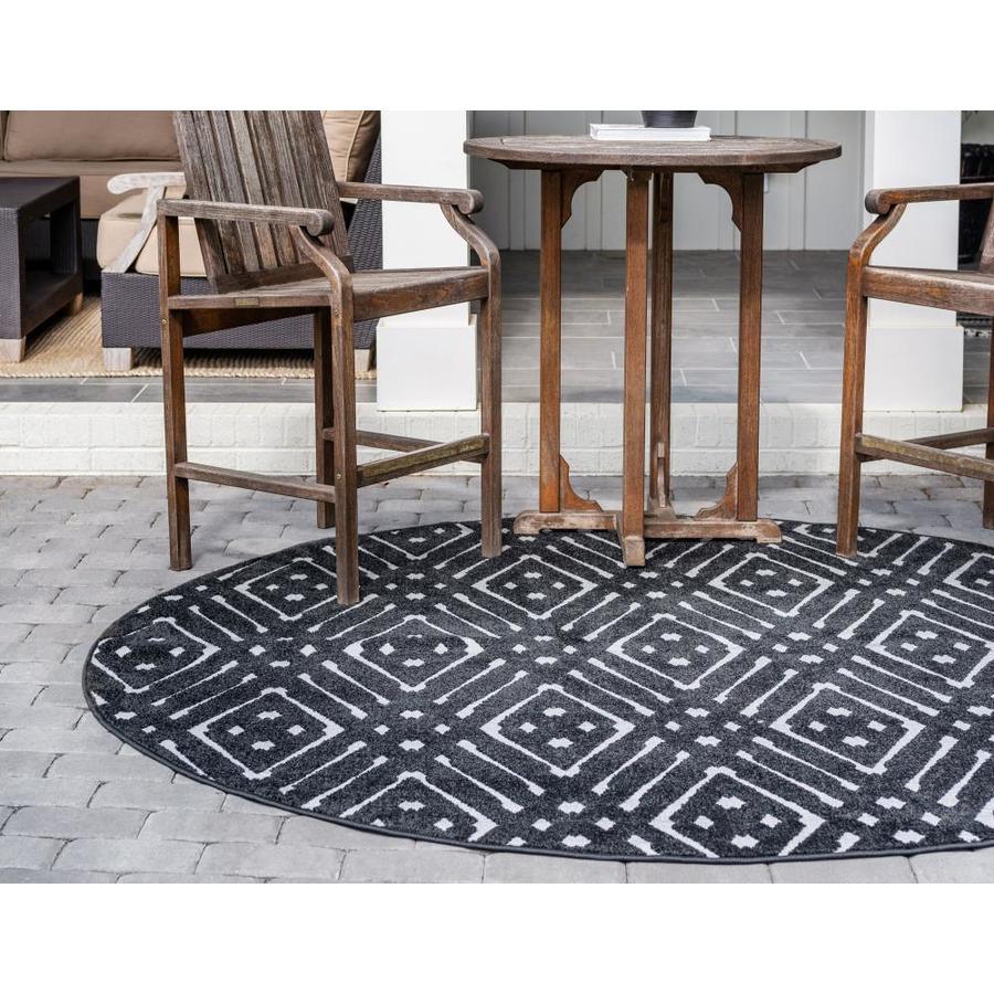 Unique Loom Ella Sabrina Soto Outdoor 8 x 8 Black Round Indoor/Outdoor Geometric French Country Area Rug