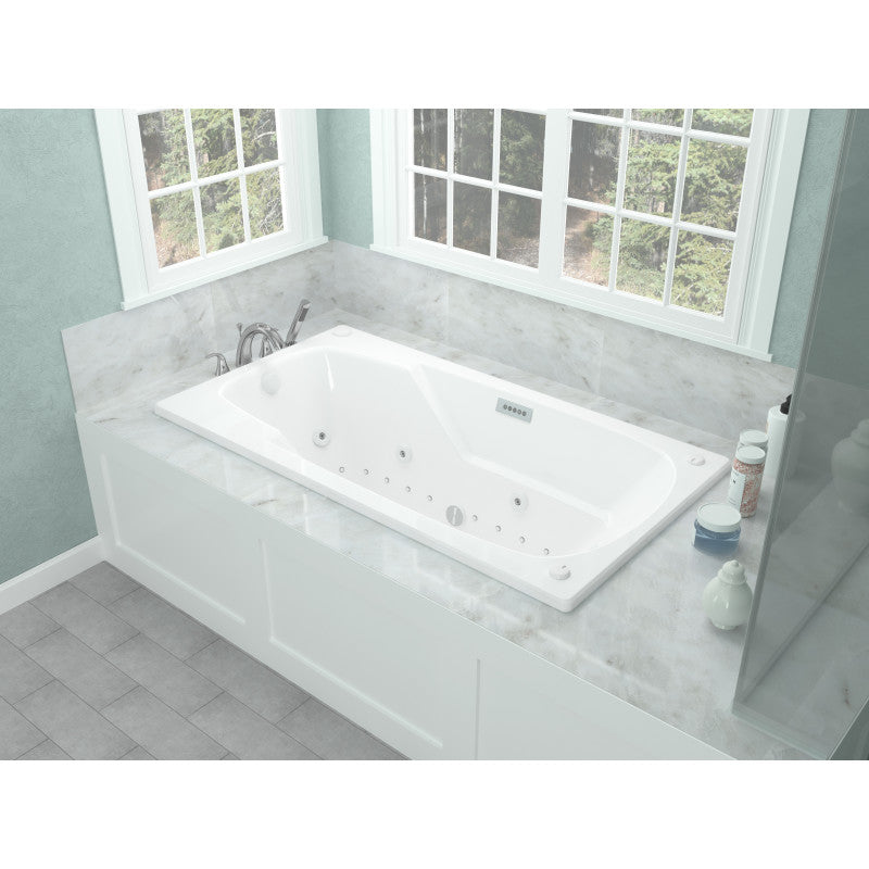 The Coral 5 ft. drop-in tub blends Whirlpool hydro jets with Acu-Stream air jets for a full-body spa experience. Crafted from glossy white acrylic reinforced with fiberglass, it features a maintenance heater, O3 ozonator, and touchpad controls in the Fully Loaded configuration.