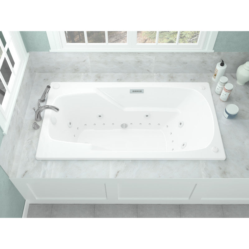 The Coral’s sculpted interior and clean rectangular deck bring a tailored elegance to any bath sanctuary. I love the angled backrest and integrated arm contours that cradle the body while jets quietly hum beneath a glossy, ultra-white surface. Pair it with brushed nickel fittings and pale stone for a serene, light-drenched retreat. It’s a centerpiece of everyday luxury—calming, indulgent, and exquisitely modern.