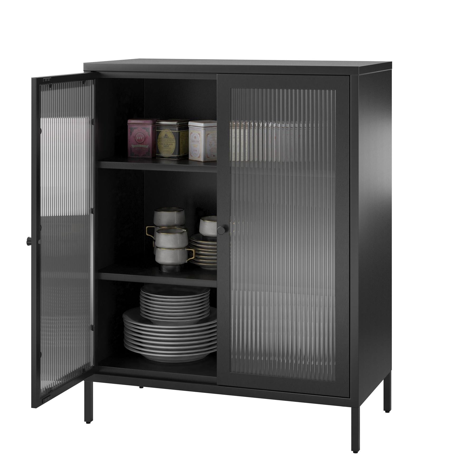 • Stylish Design: Combines powder-coated steel with elegant fluted glass doors for modern sophistication.