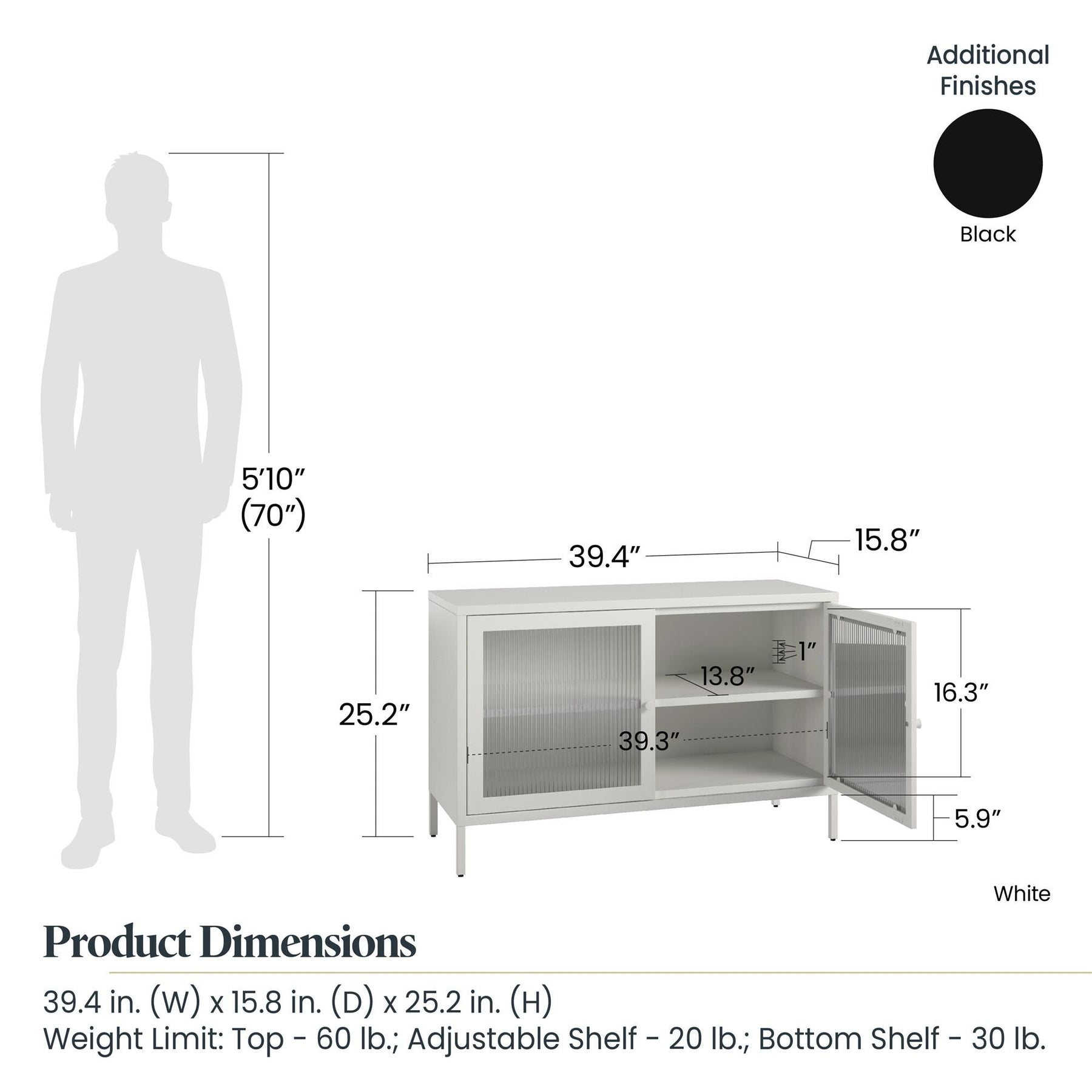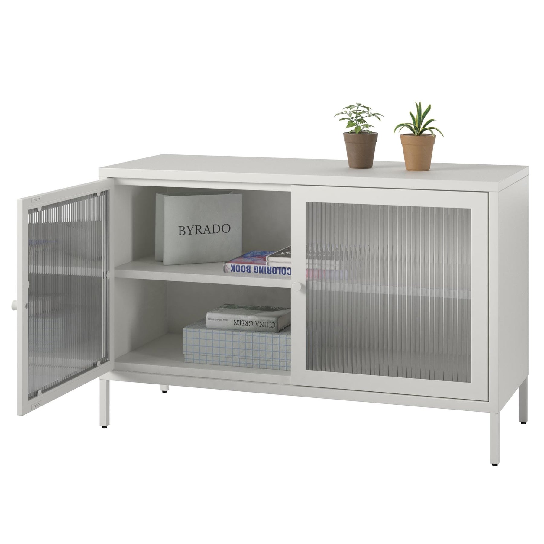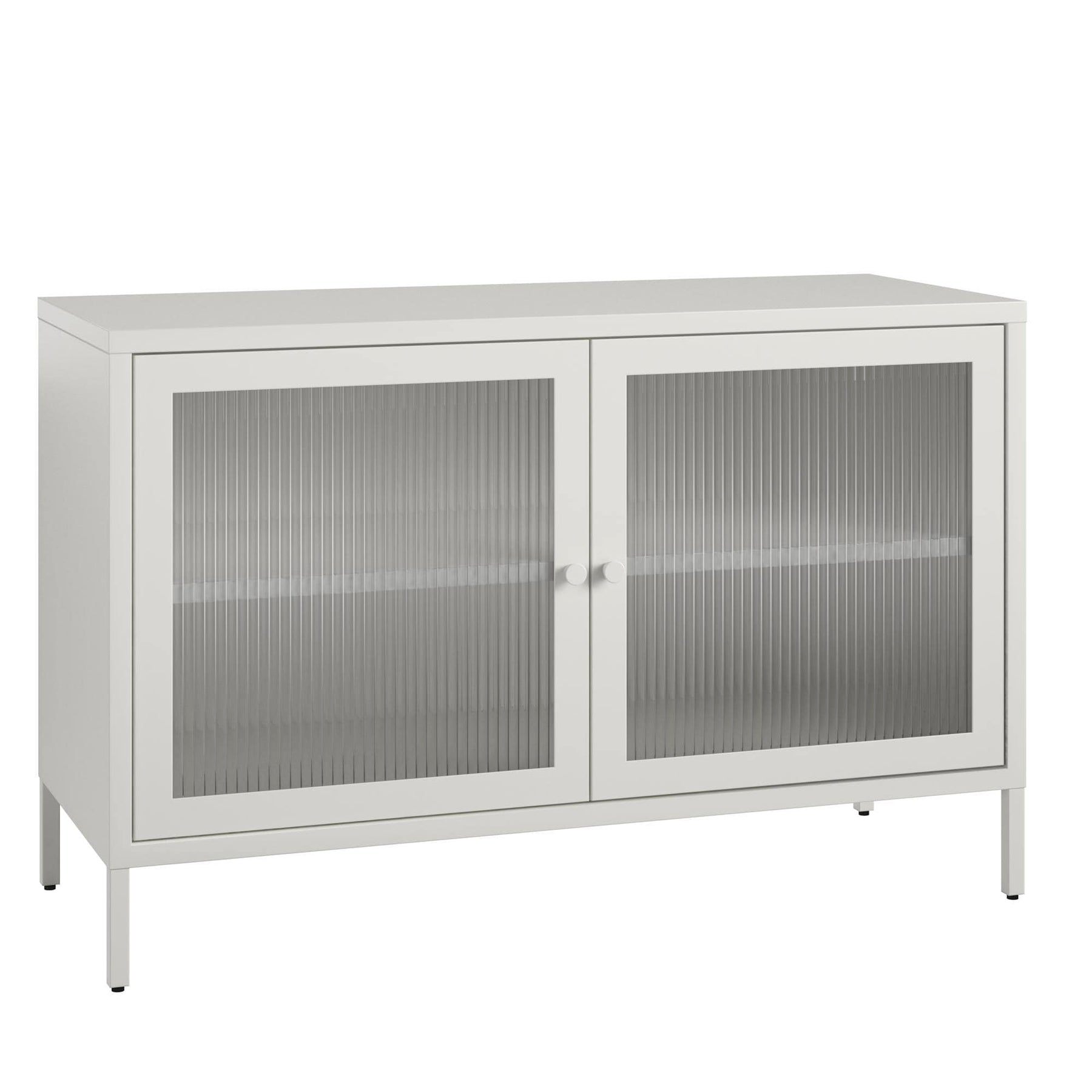 • Stylish Design: Combines powder-coated metal with elegant fluted glass doors for a modern take on traditional storage.