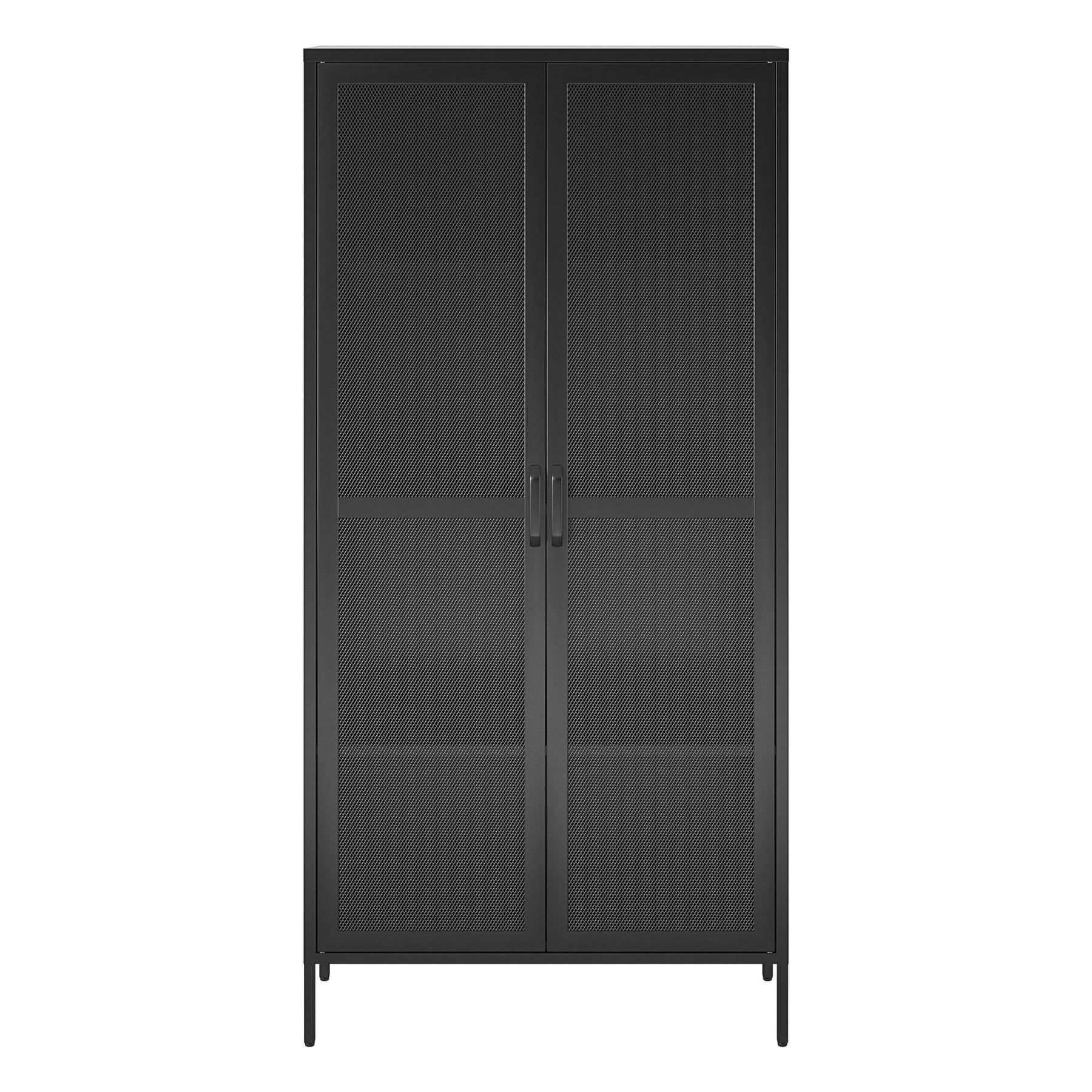 Enhance your home organization with the Ameriwood Home Sunset District Utility Storage Cabinet. Made from durable powder-coated steel and featuring modern mesh doors, this freestanding cabinet fits seamlessly into any room, offering ample space with adjustable shelving for all your storage needs.
