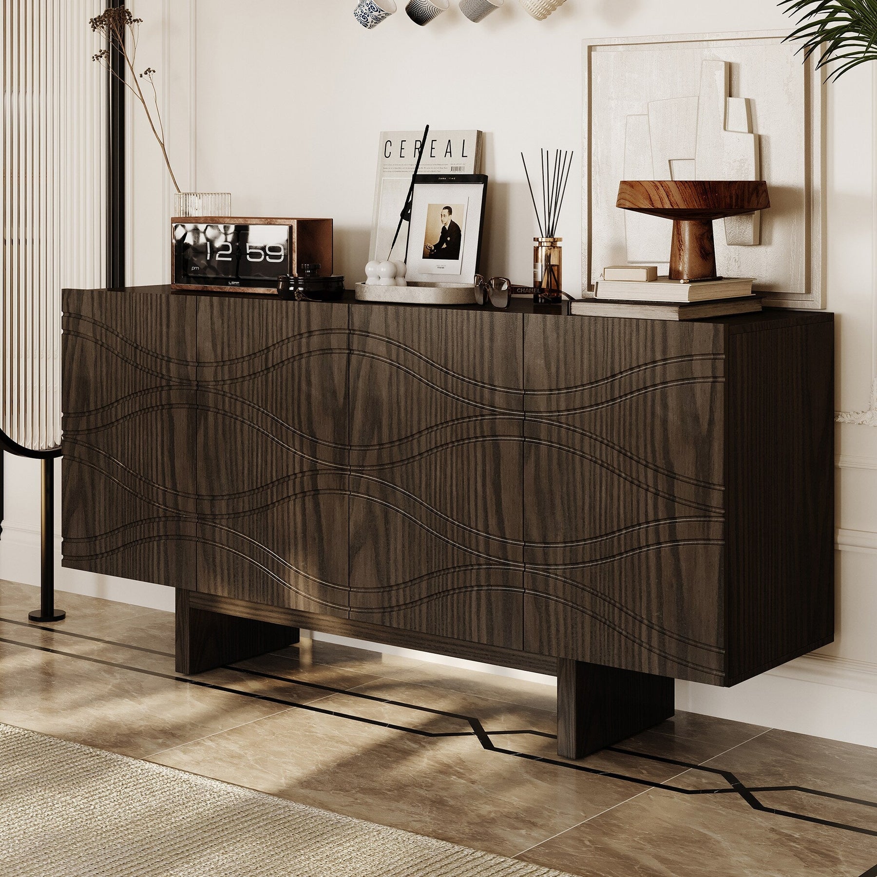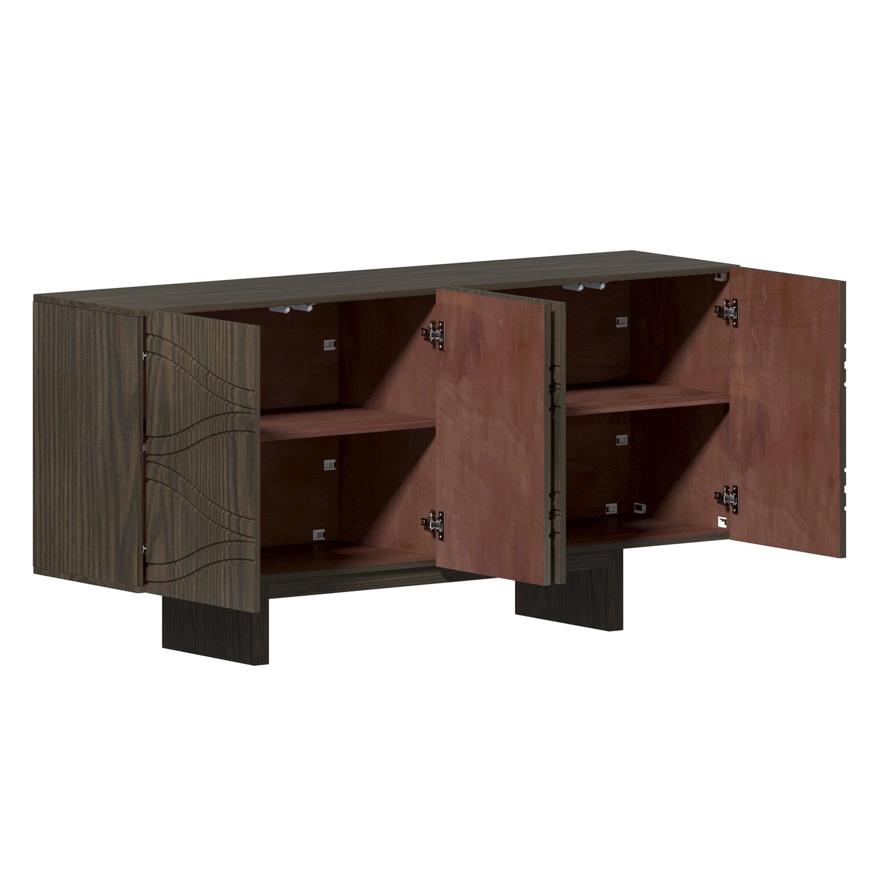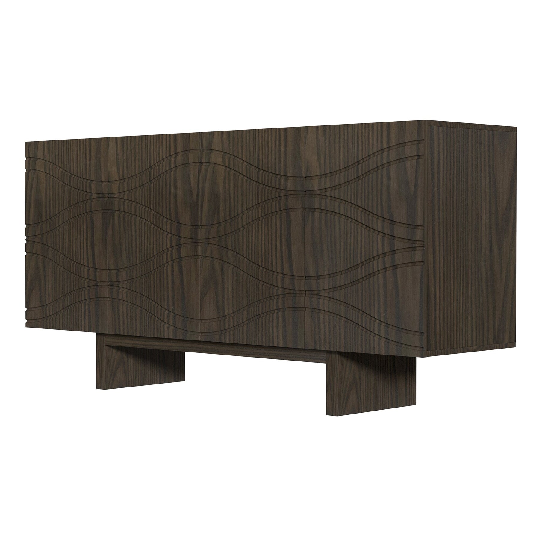 Envision a room elevated by the sleek sophistication of the Clihome Freestanding Storage Cabinet. The stunning wood grain detail elegantly complements its modern polka-dot door accents, providing a chic focal point in any space. Use it as a standout TV unit in your living room, adding not only function but a touch of glamour. Let this piece redefine your environment, offering both beauty and the luxury of organization.