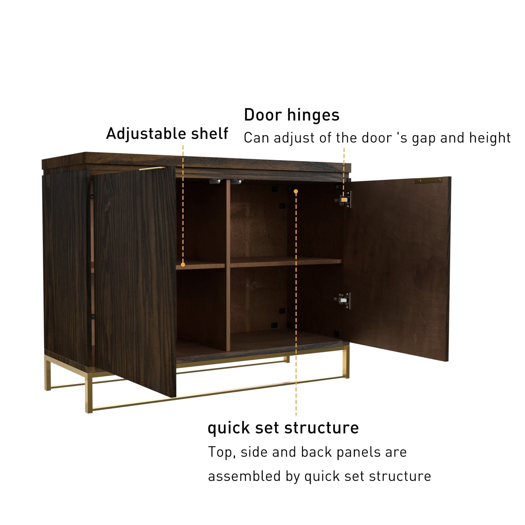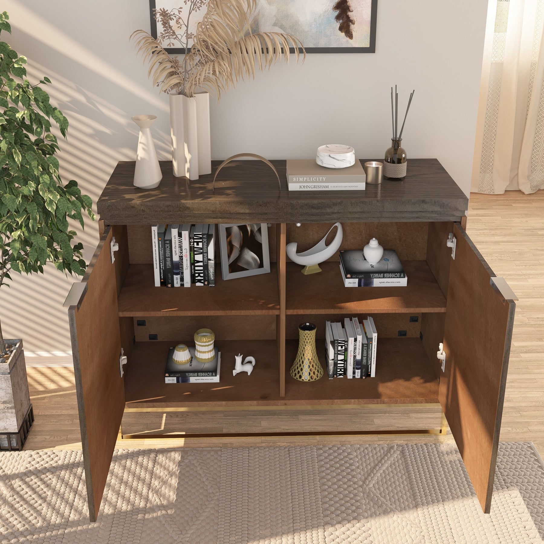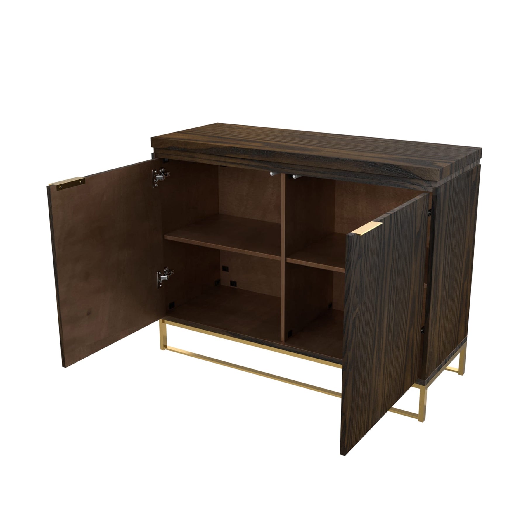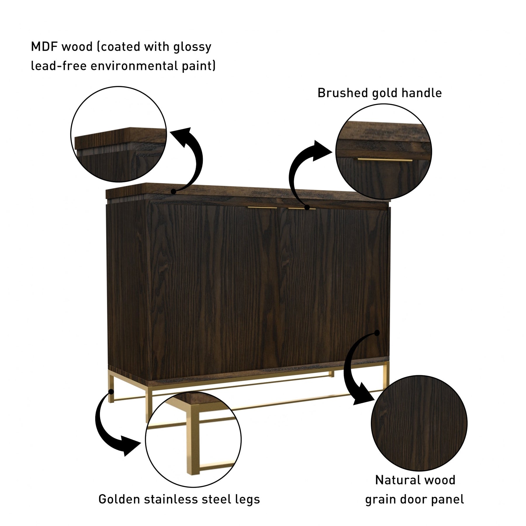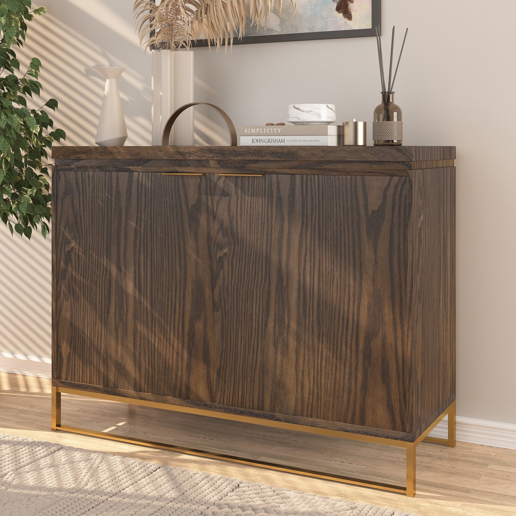 Transform your home with the Clihome Utility Storage Cabinet, an elegant interplay of industrial design and sophisticated wood grain. Its standout gold-brushed legs immediately capture attention, offering a luxurious flair. Position it as an artful anchor in your entryway or as a functional piece in your dining room. This storage solution not only complements your space with its chic design but also speaks to a lifestyle of refined functional beauty.