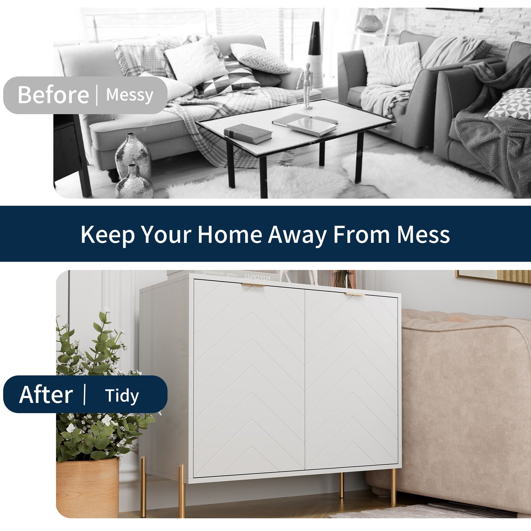 Envision your living space transformed by the understated elegance of the Clihome Storage Cabinet. With its clean lines and minimalist design, this piece brings a touch of modern sophistication to any room. Highlight its chic white finish as a standout feature against bold wall colors or textured backdrops. Use it not only as a storage solution but also as a statement piece that organizes and beautifies your environment. Truly, it is a testament to the harmonious blend of functionality and style, making it a must-have in luxurious living.