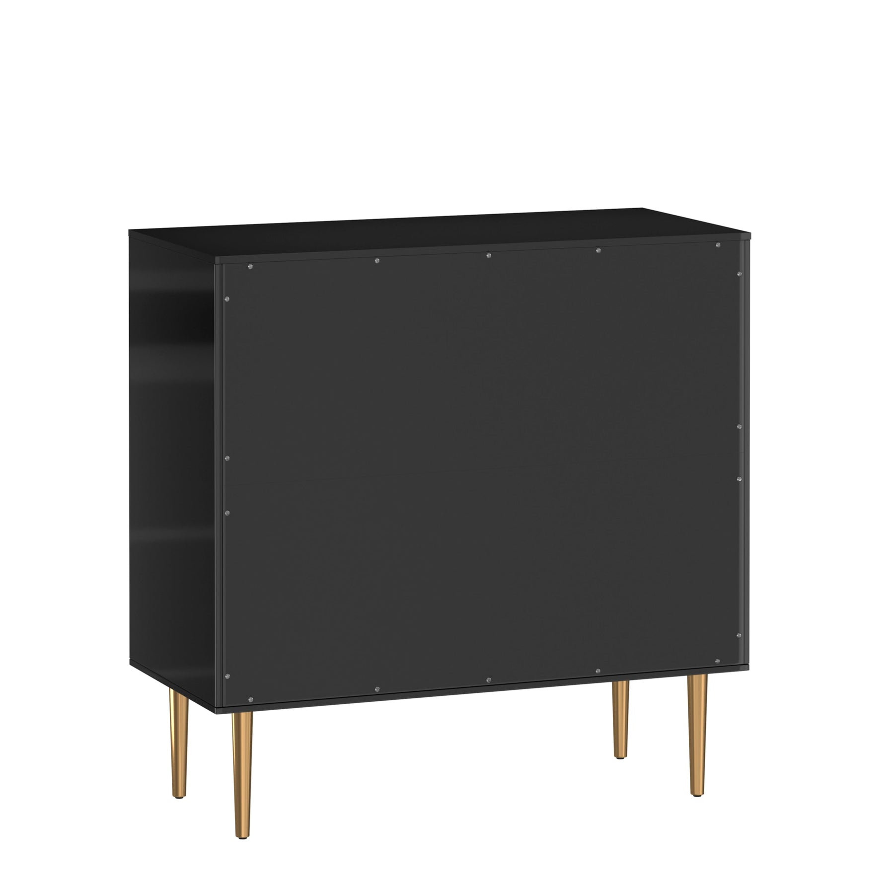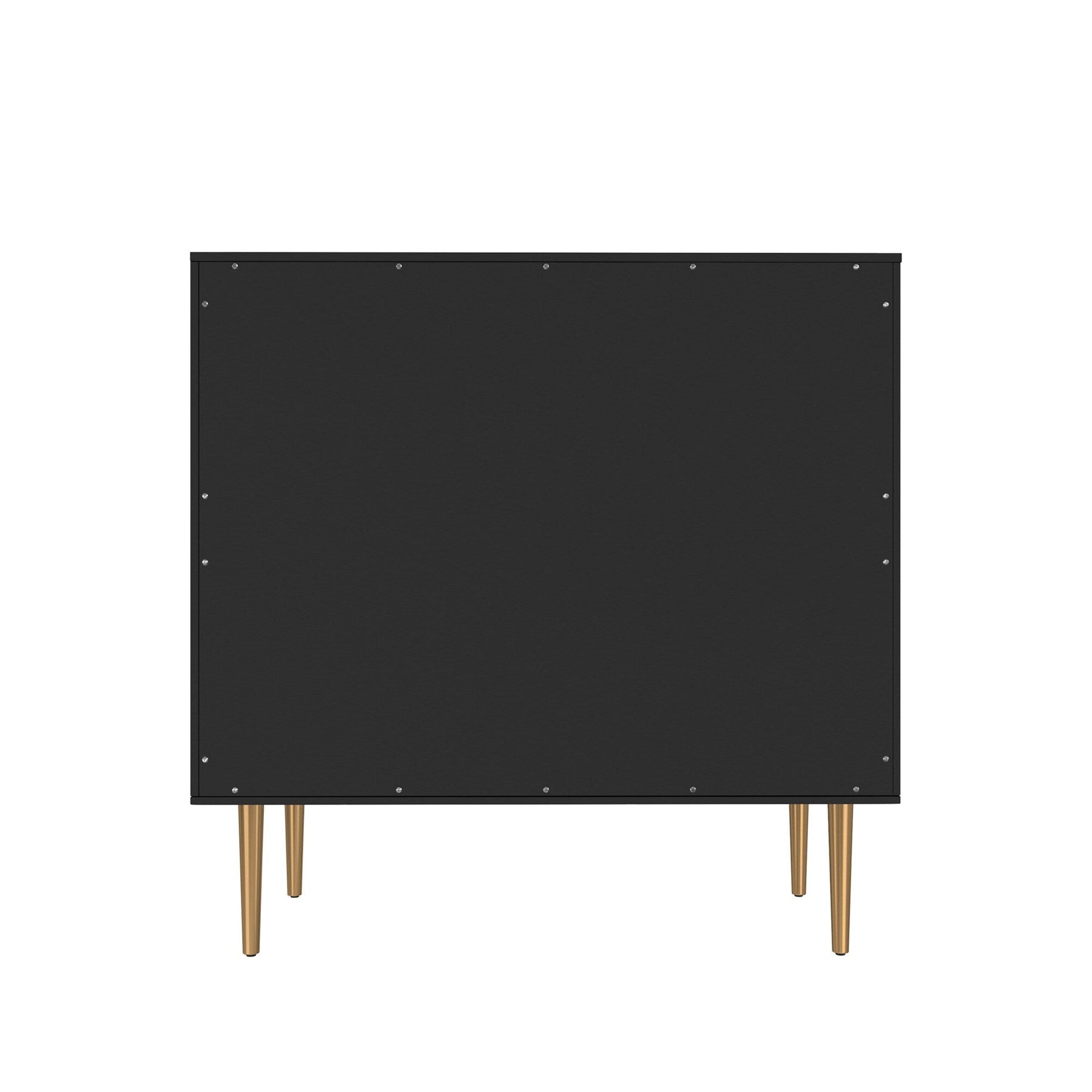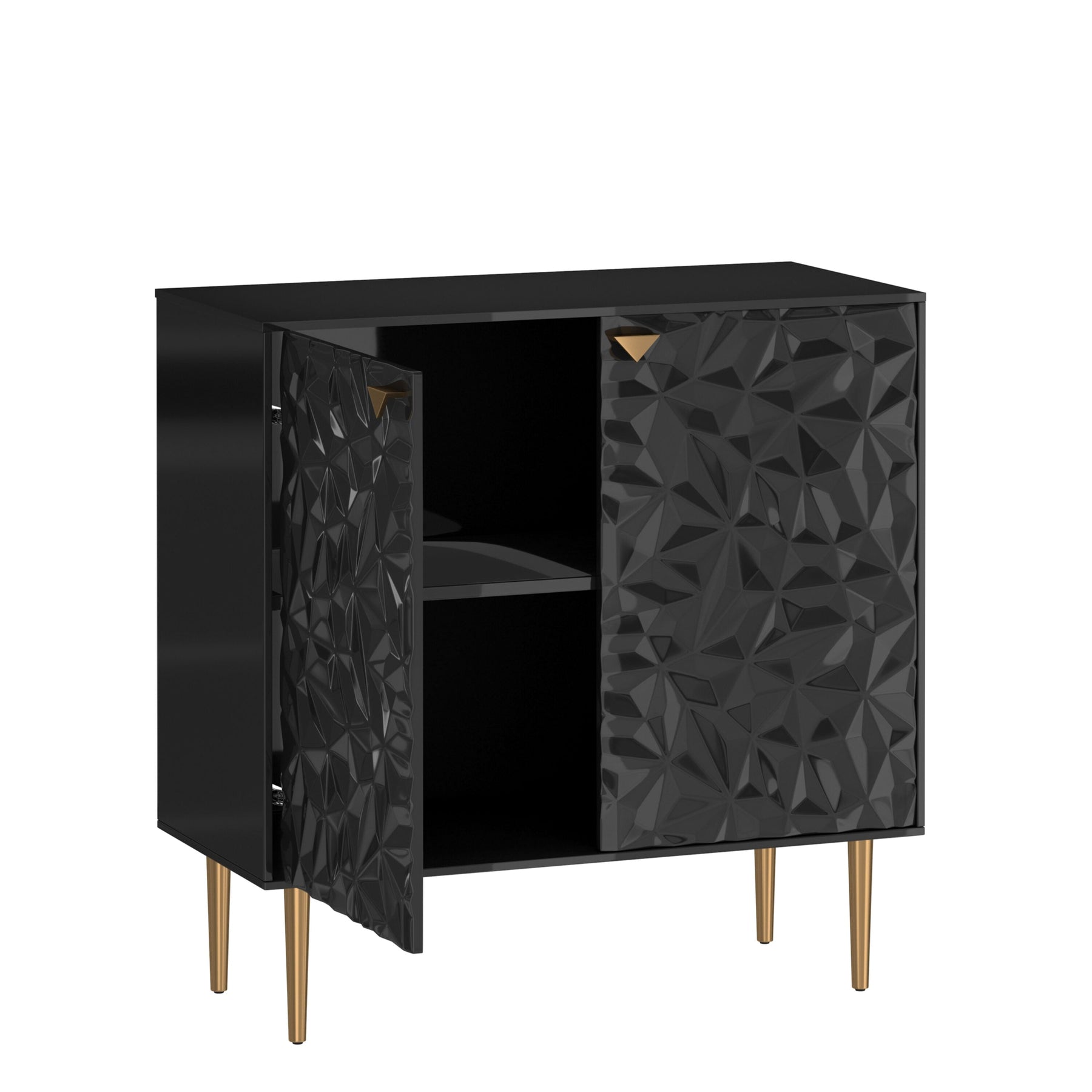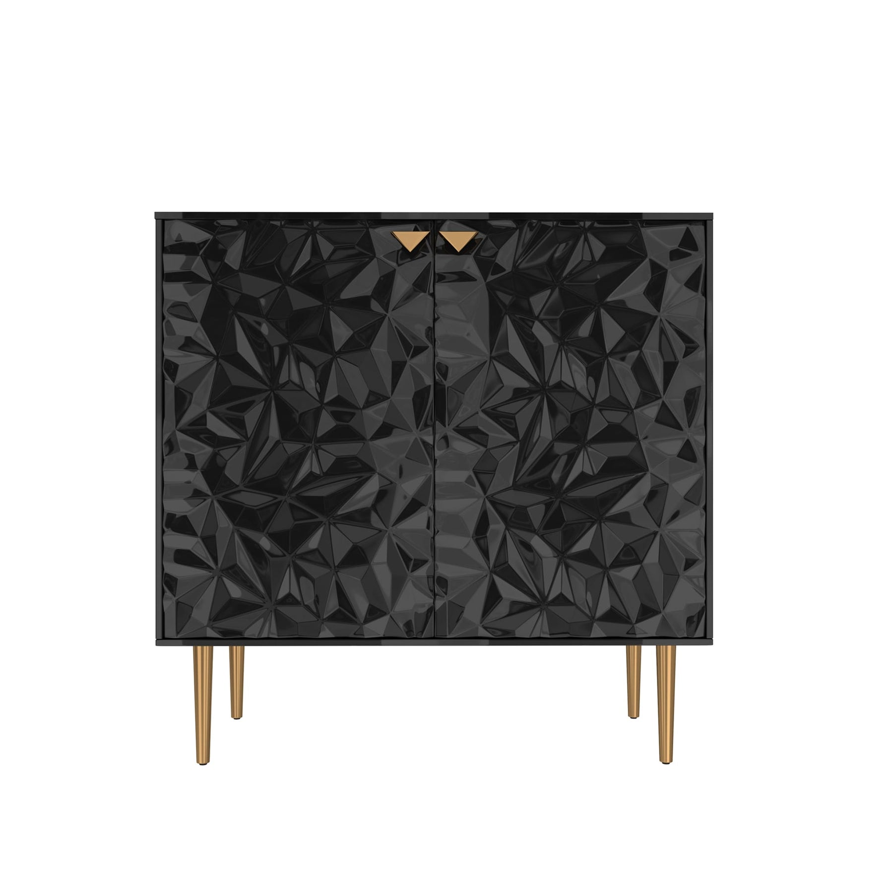 • Elegant Design: Unique raised diamond pattern on black doors with slim X-tapered brass legs.
