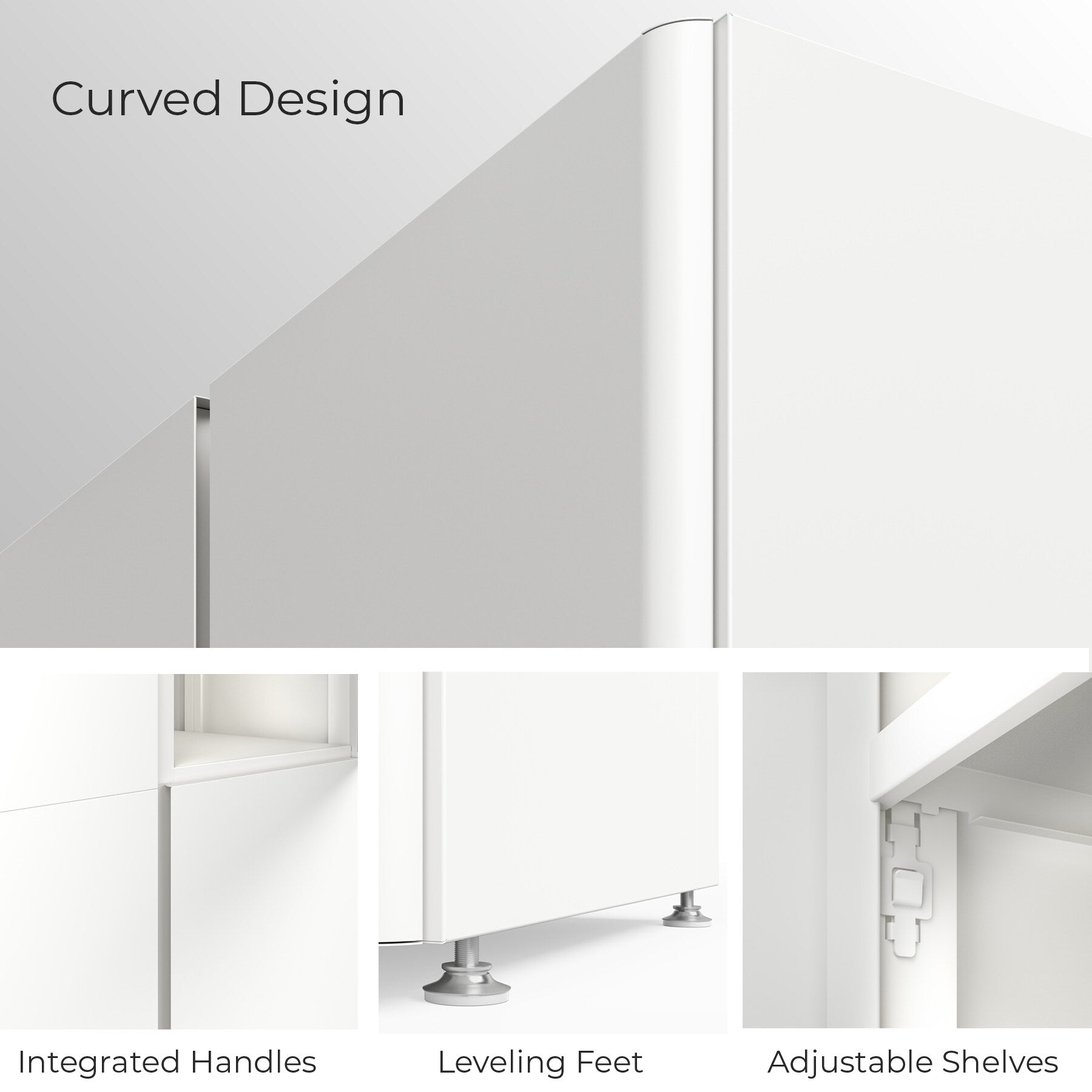 The Everest Cloud White Utility Storage Cabinet transforms ordinary spaces into organized sanctuaries, embodying the fusion of style and sophistication. Its smooth curves and integrated handles present an architectural silhouette, turning functional storage into an art form. Imagine this cabinet standing gracefully in a sleek mudroom or complementing a tranquil, modern office. An essential piece for elegant living, it promises both storage efficiency and aesthetic refinement.