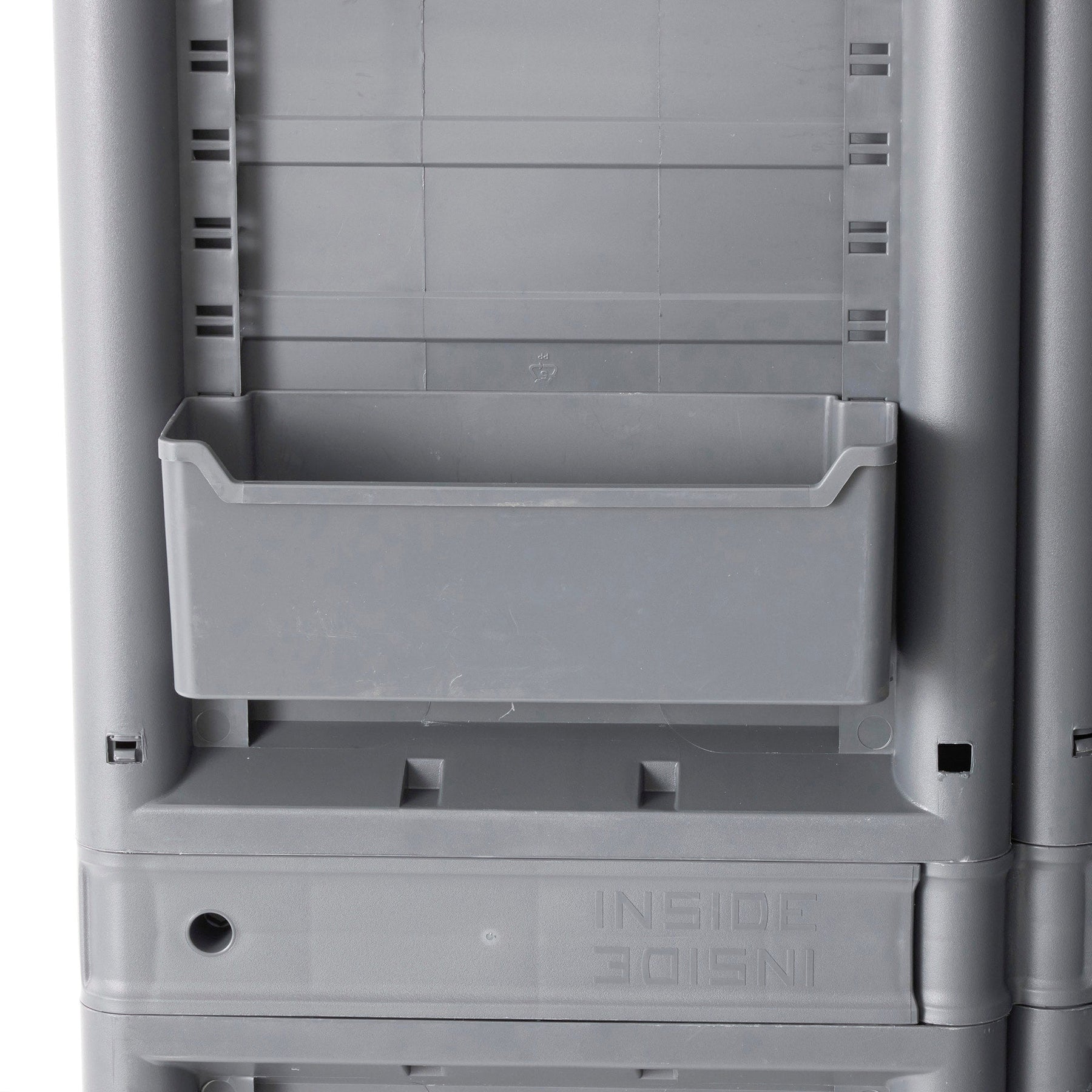 • Heavy-Duty Construction: Made from durable plastic resin with metal shelves for a robust yet lightweight solution.