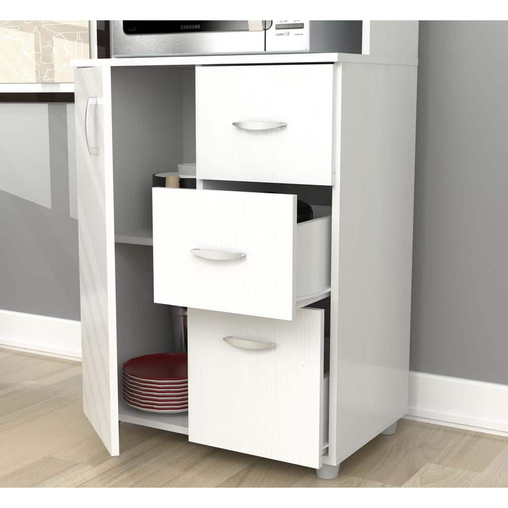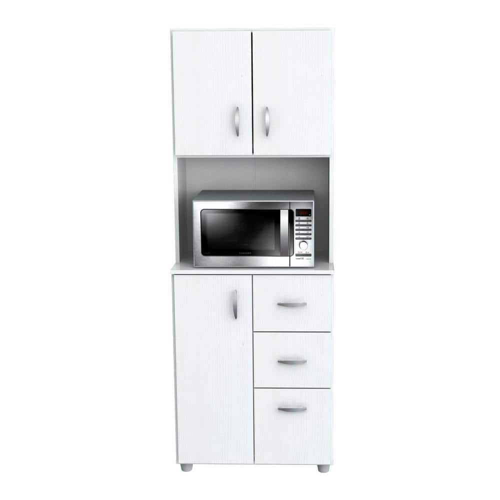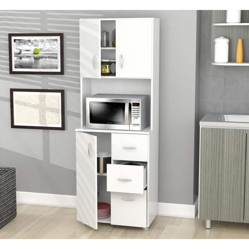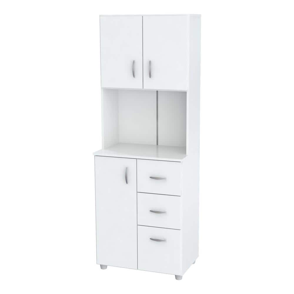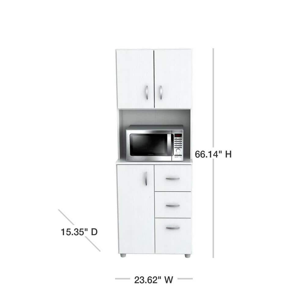 Inval 23.62x15.35x66.14 in. Microwave Storage Utility Cabinet in Laricina White