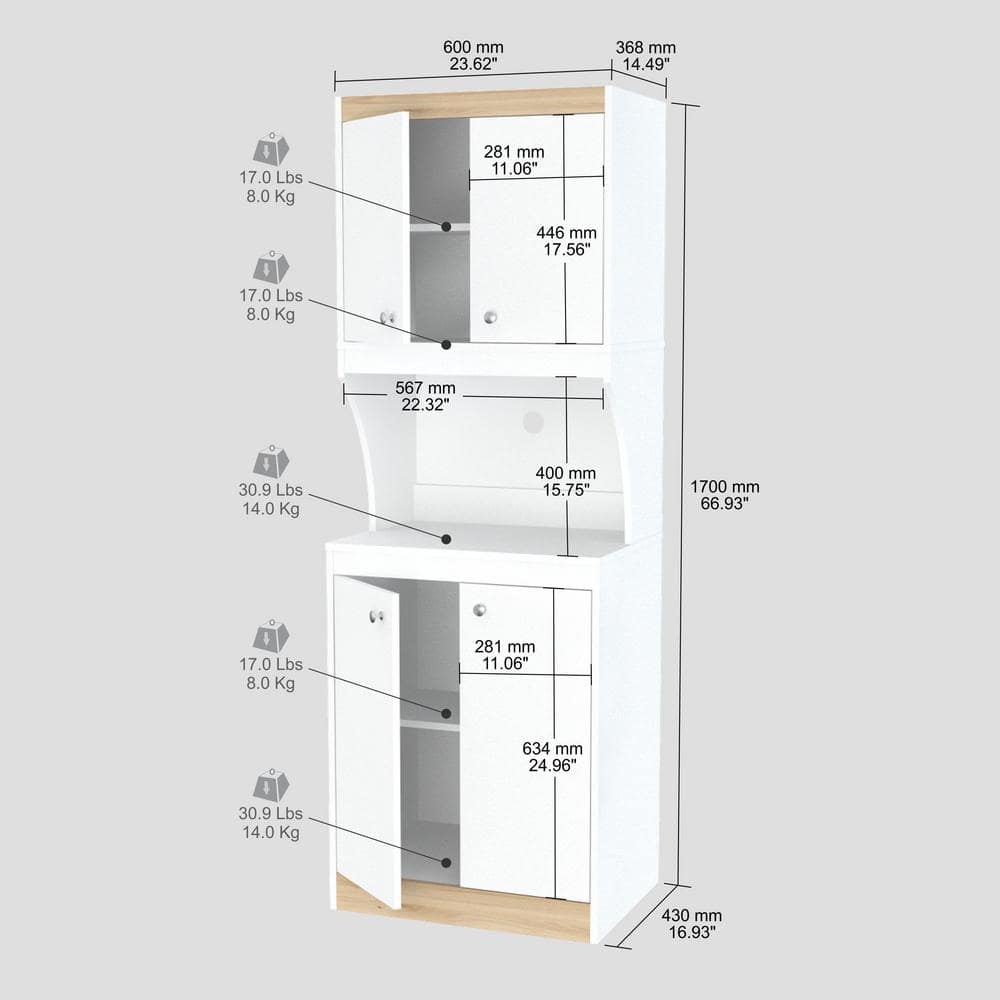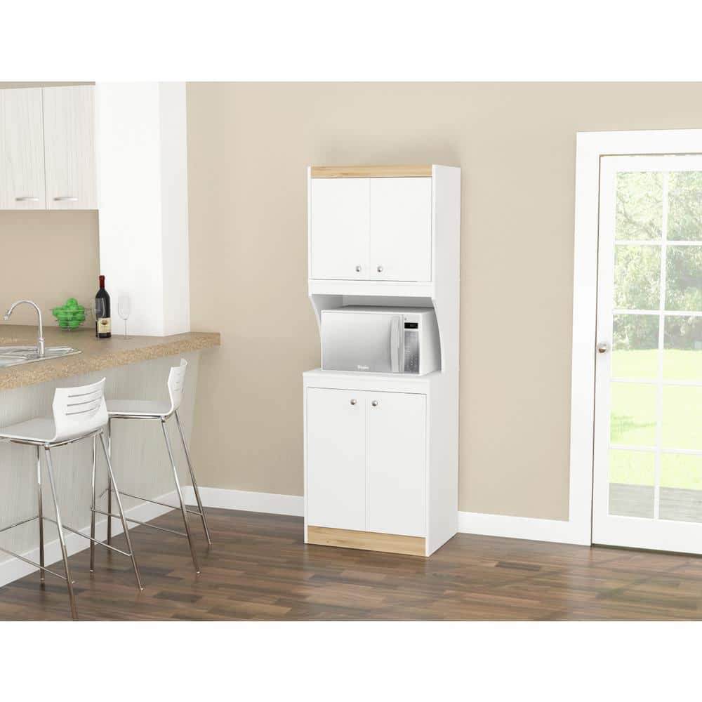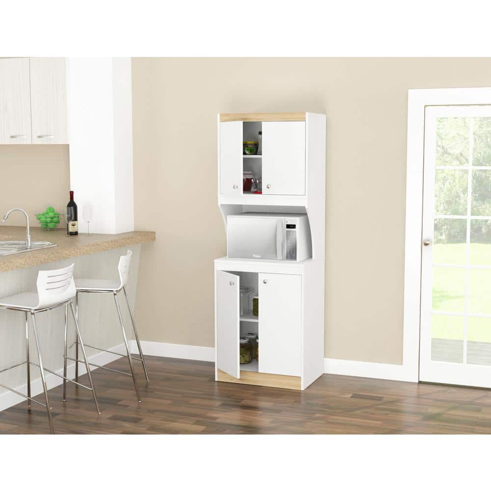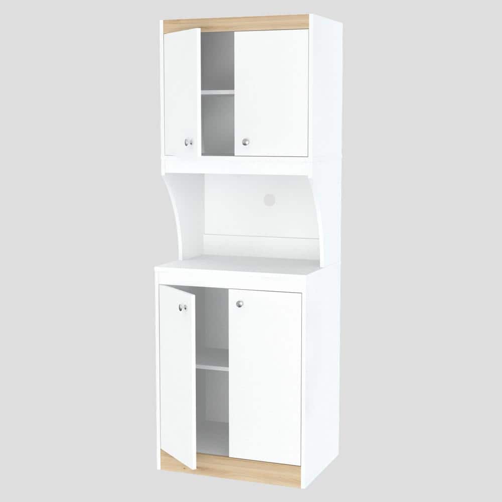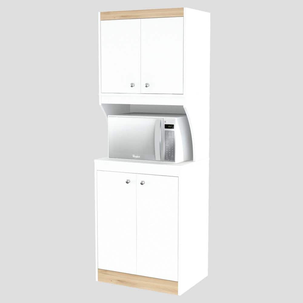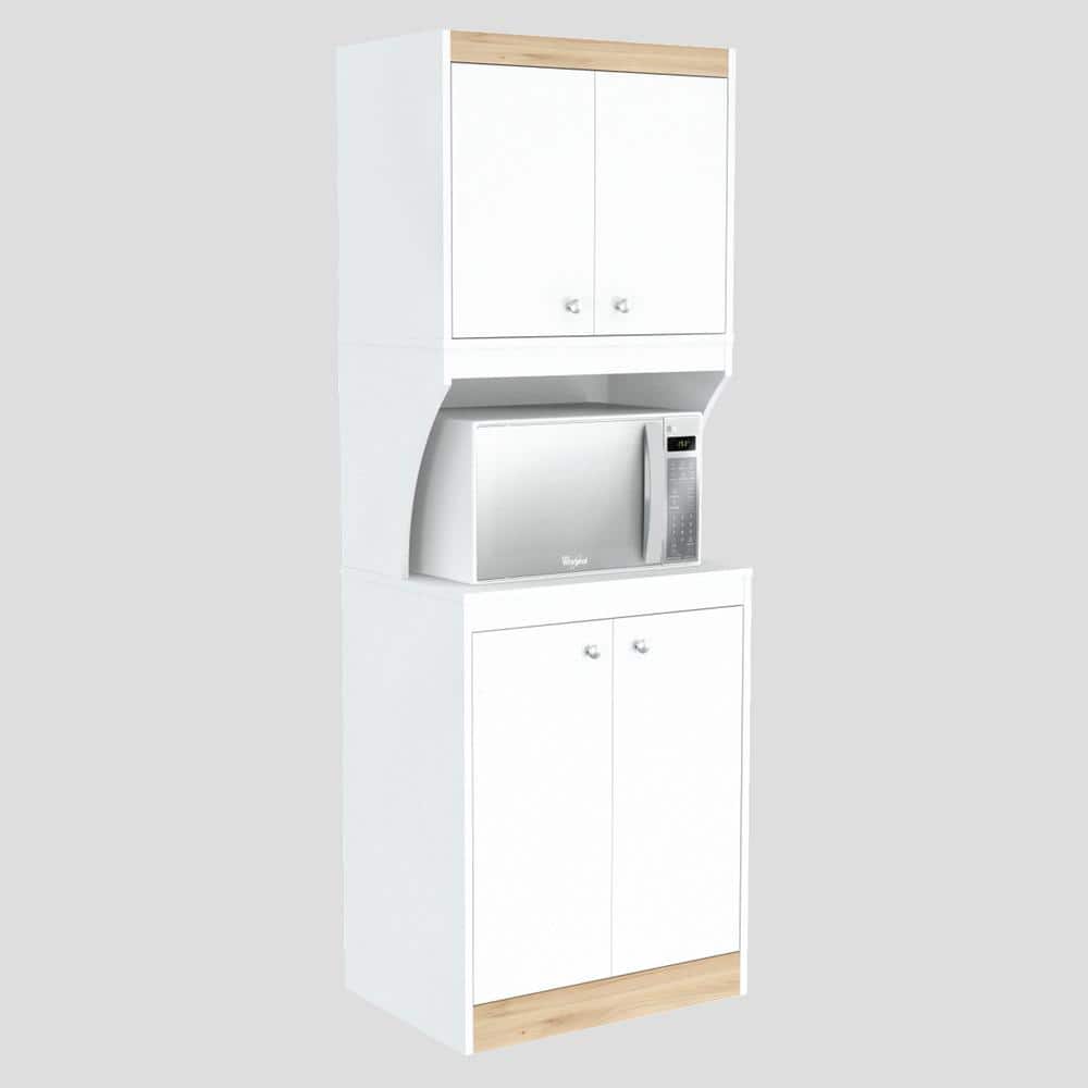 inval america LLC Galley Ready to Assemble 23.6 in. W x 16.9 in. D x 67 in. H Microwave Storage Utility Cabinet in White and Vienes Oak