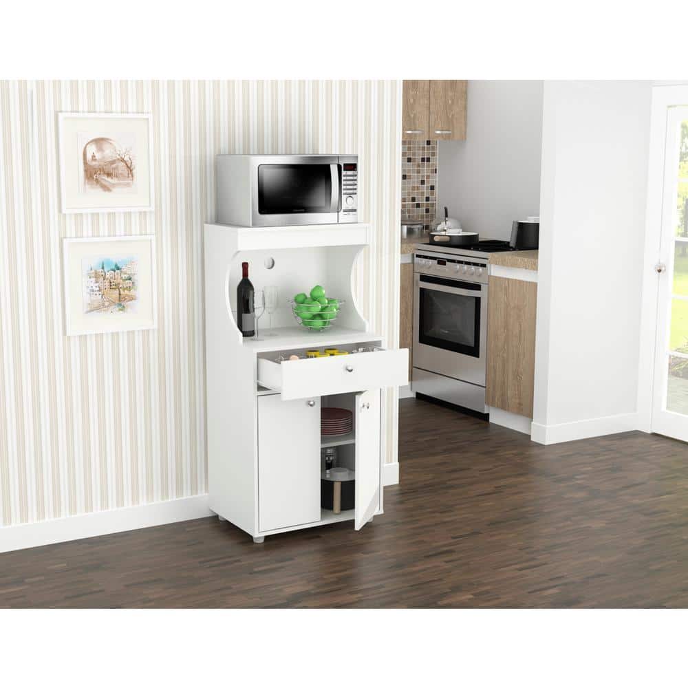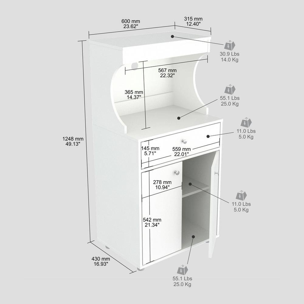 Inval Galley Ready to Assemble 23.6 in. W x 17.1 in. D x 50 in. H Microwave Storage Utility Cabinet in White