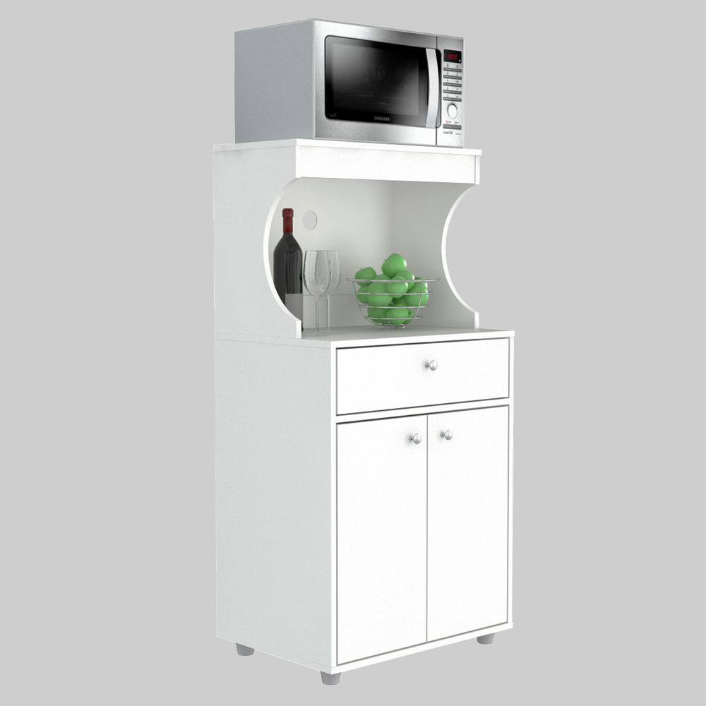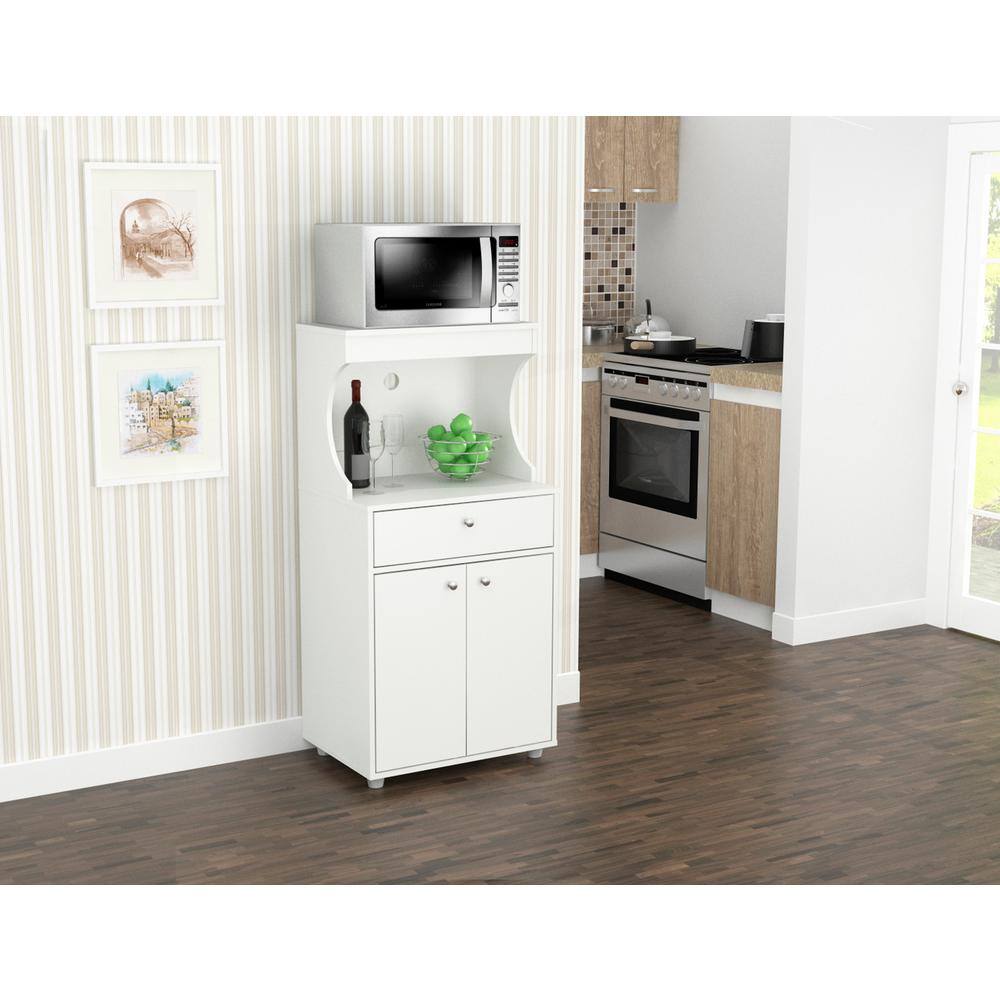 Store and organize with the Inval Galley Microwave Storage Utility Cabinet, offering a sleek, modern design crafted from heat, scratch, and stain-resistant melamine. Equipped with spacious shelving, a large drawer, and a cable pass-through, it's perfect for kitchens or office break rooms. Assembly is easy, making this a functional and stylish choice for any space.