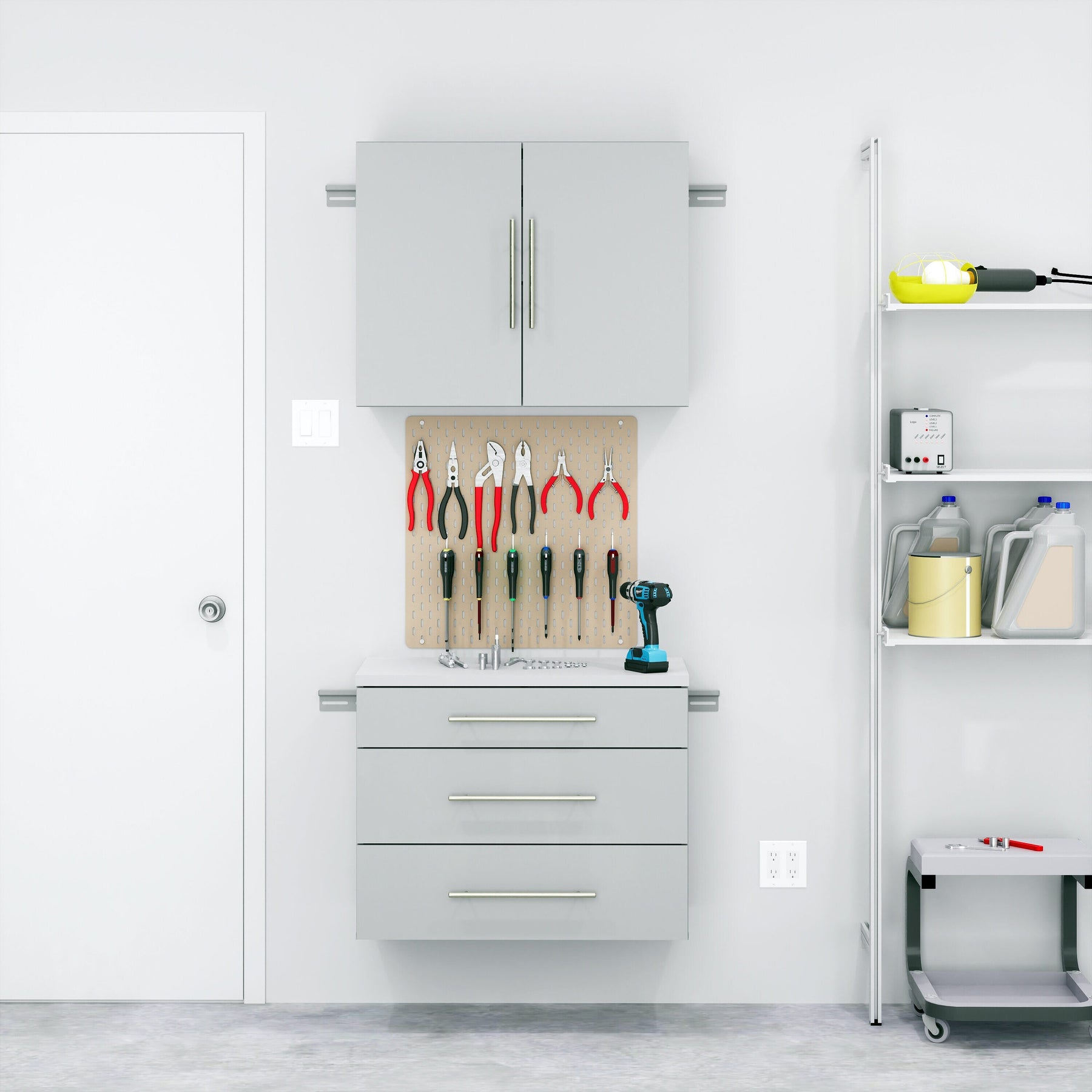 Transform your storage spaces with Prepac HangUps Wall-mount Utility Cabinet. Designed to adapt, this sleek, gray cabinet is perfect for garages, offices, and laundry rooms. Enjoy easy cleaning and organized living with a sturdy, wall-mounted solution that protects your items while offering ample storage.