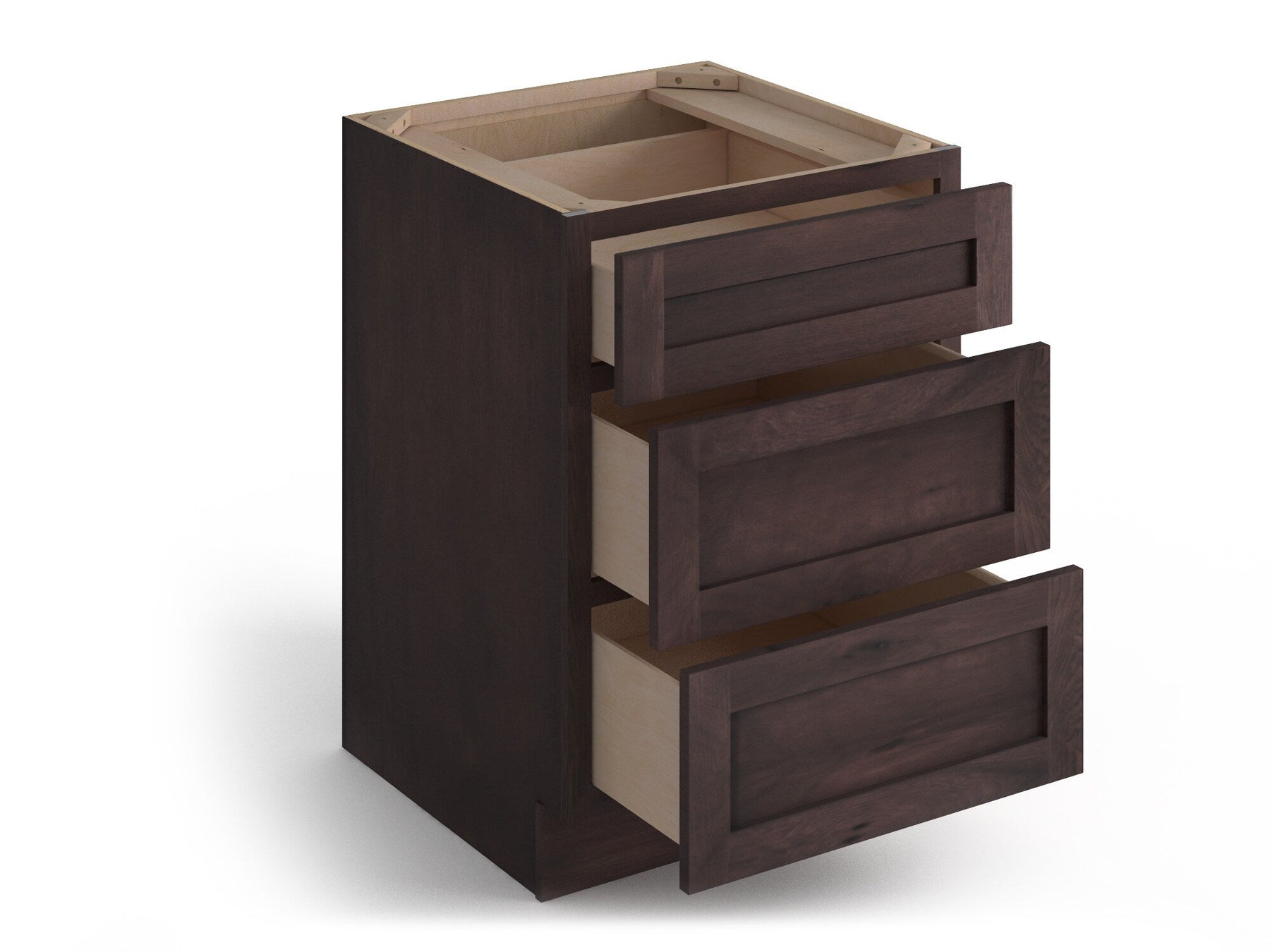 Valleywood Cabinetry 27-in W x 34.5-in H x 24-in D Rustic Hickory 3-Drawer Base Ready To Assemble Plywood Cabinet (Flat Panel Style)