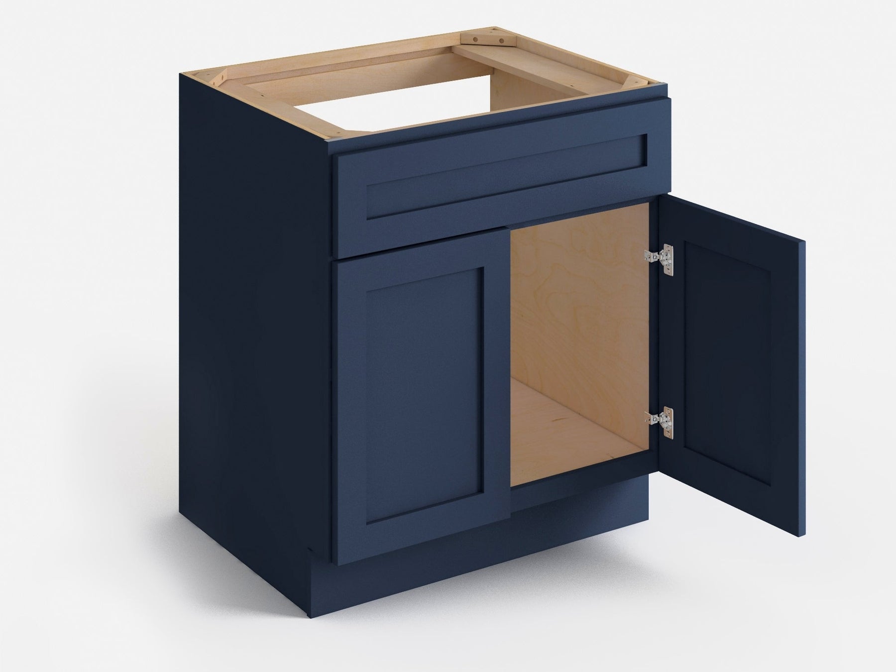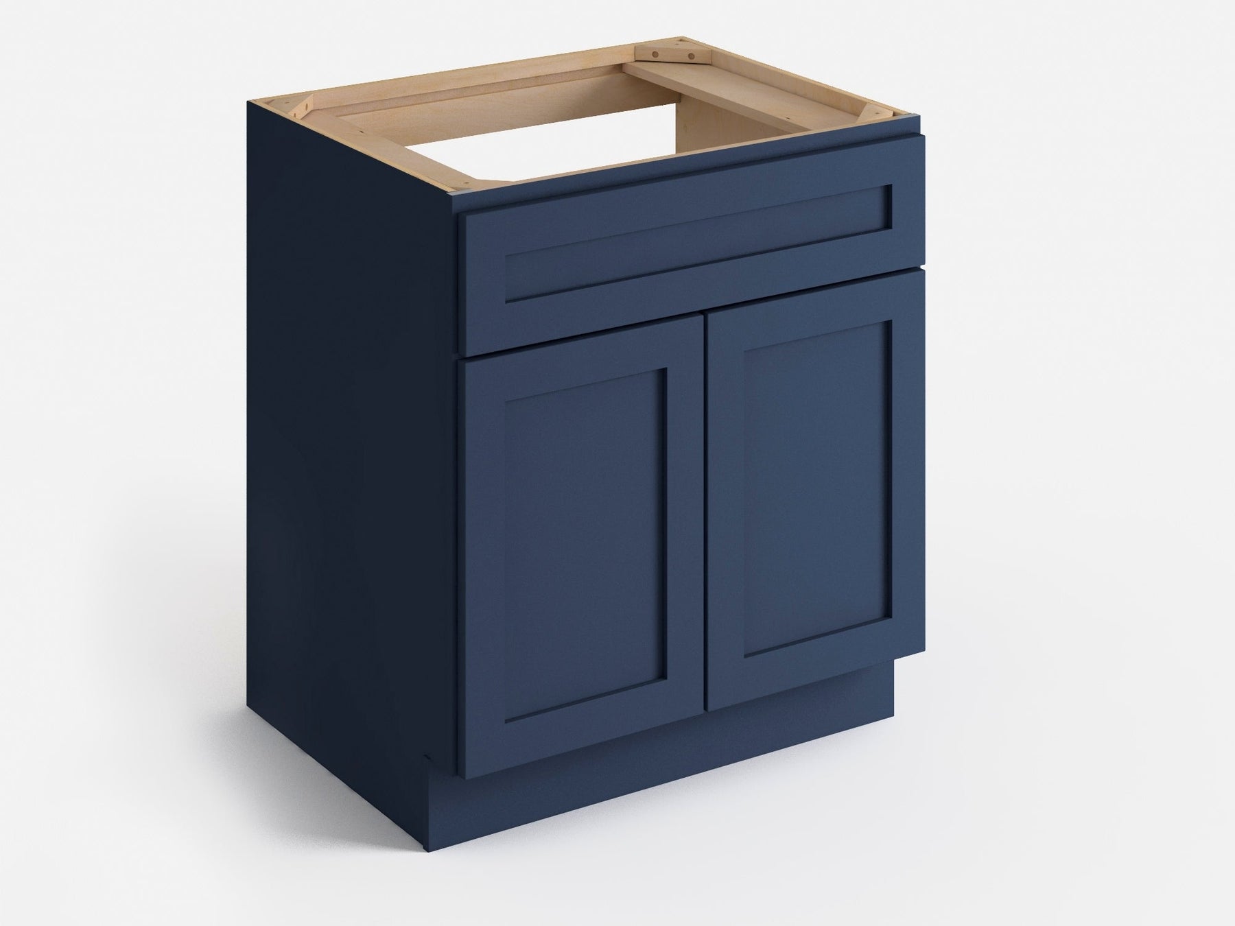 Valleywood Cabinetry 30-in W x 34.5-in H x 24-in D Marine Blue Birch Sink Base Ready To Assemble Plywood Cabinet (Flat Panel Shaker Style)