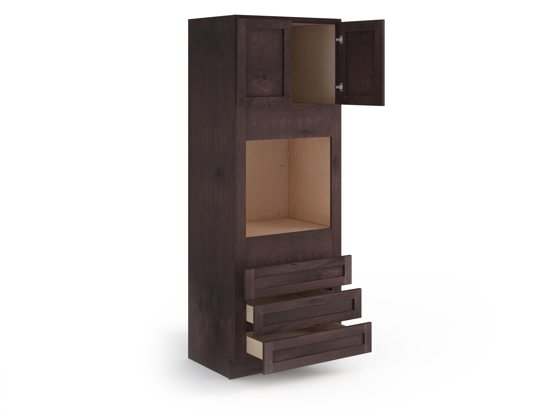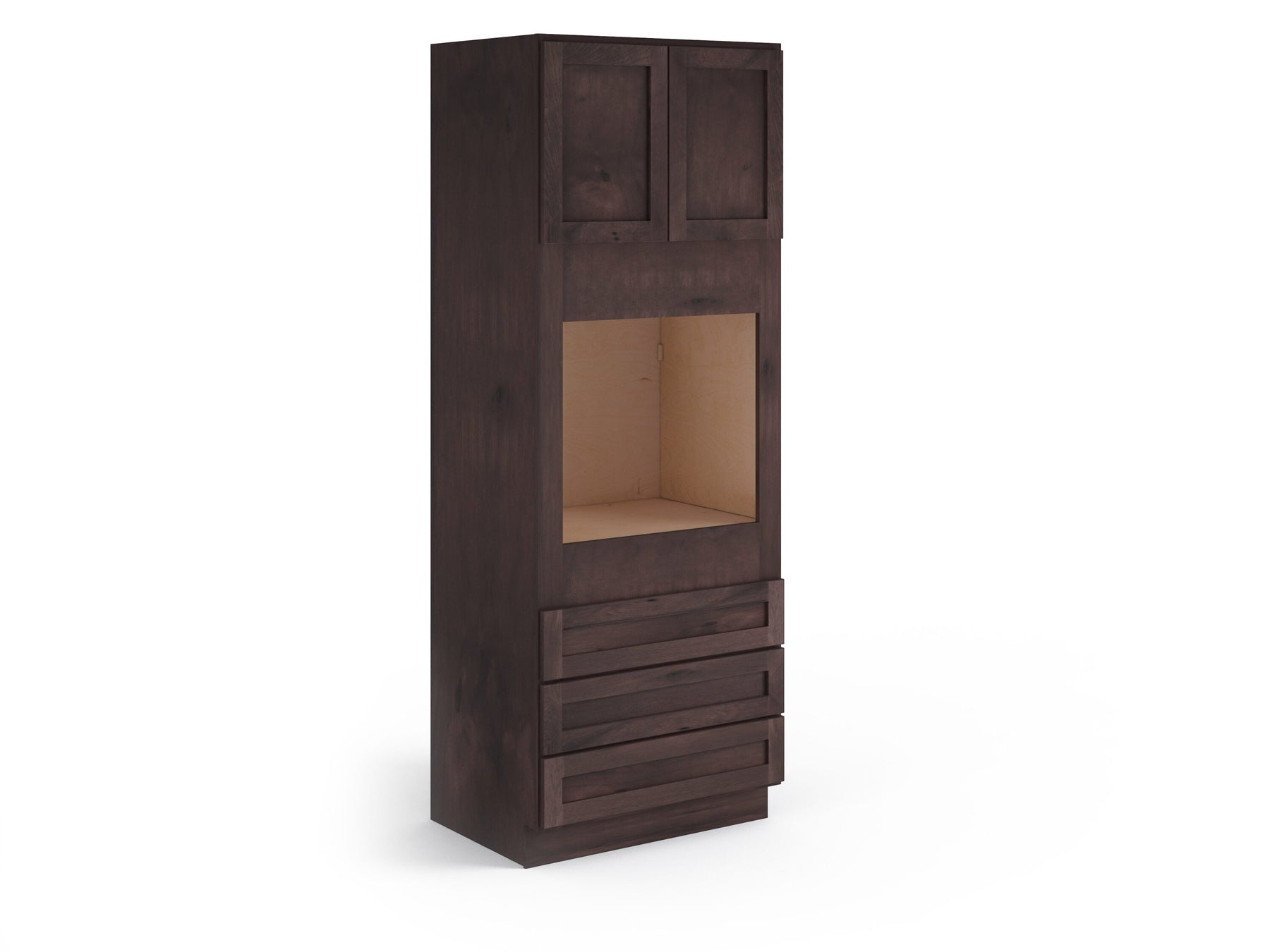 Valleywood Cabinetry 33-in W x 90-in H x 24-in D Rustic Hickory 3-Drawers Single or Double Oven Pantry Ready To Assemble Plywood Cabinet (Flat Panel Shaker Style)