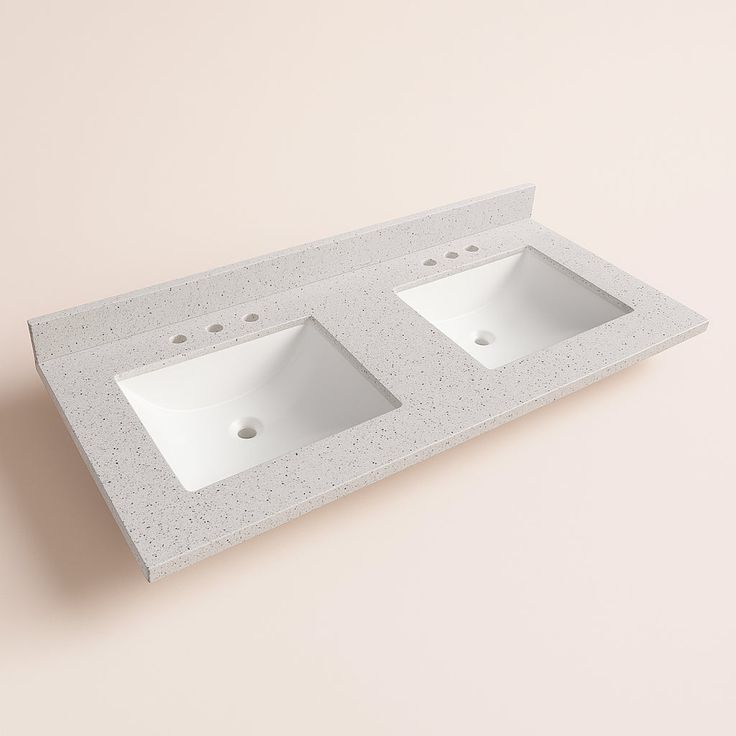 A: Yes, the vanity top features two integrated rectangular sinks.