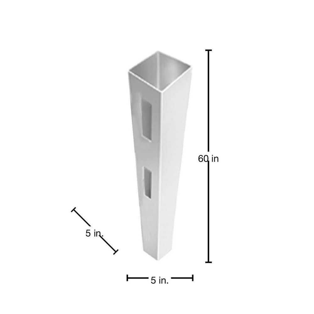 Vinyl 5x5x5 ft White 2-Rail End Fence Post