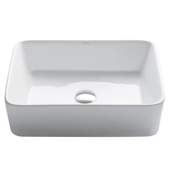 KRAUS Rectangular Ceramic Vessel Bathroom Sink in White, 19 1/4 in.