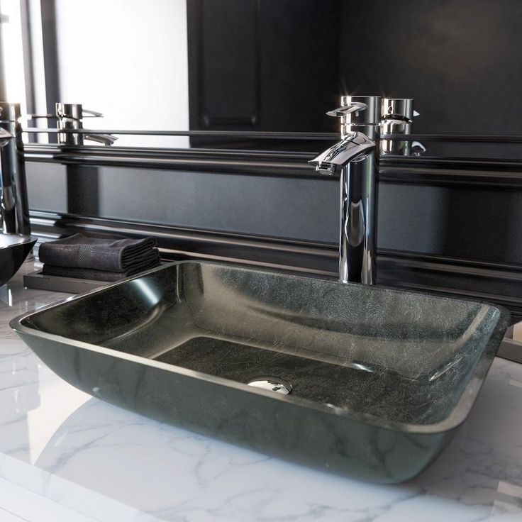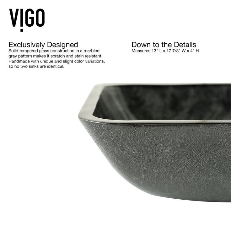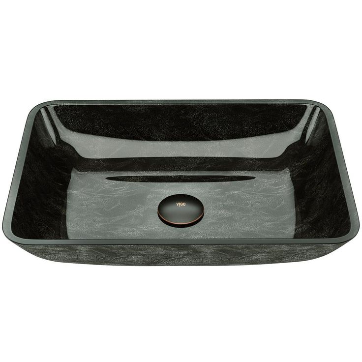 Constructed from solid tempered glass, the VIGO Rectangular Gray Onyx Glass Vessel Bathroom Sink is a modern addition to your home, ideal for everyday use. The polished interior and textured exterior are stain-resistant and easy to clean. Featuring a modern rectangular shape, the sparkly silver accents through a black base give this vessel sink a delicate marbled look to bring chic sophistication to your bathroom.