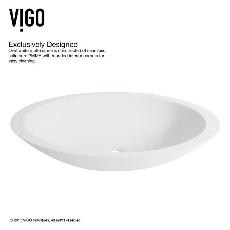 Seamless, solid core Matte StoneTM construction makes the VIGO Wisteria Matte StoneTM Vessel Bathroom Sink extremely durable. Its surface is scratch and fade resistant, and is easy to maintain. With an oval design and satin-smooth matte surface, this vessel sink daintily updates any traditional, transitional, or contemporary bathroom.