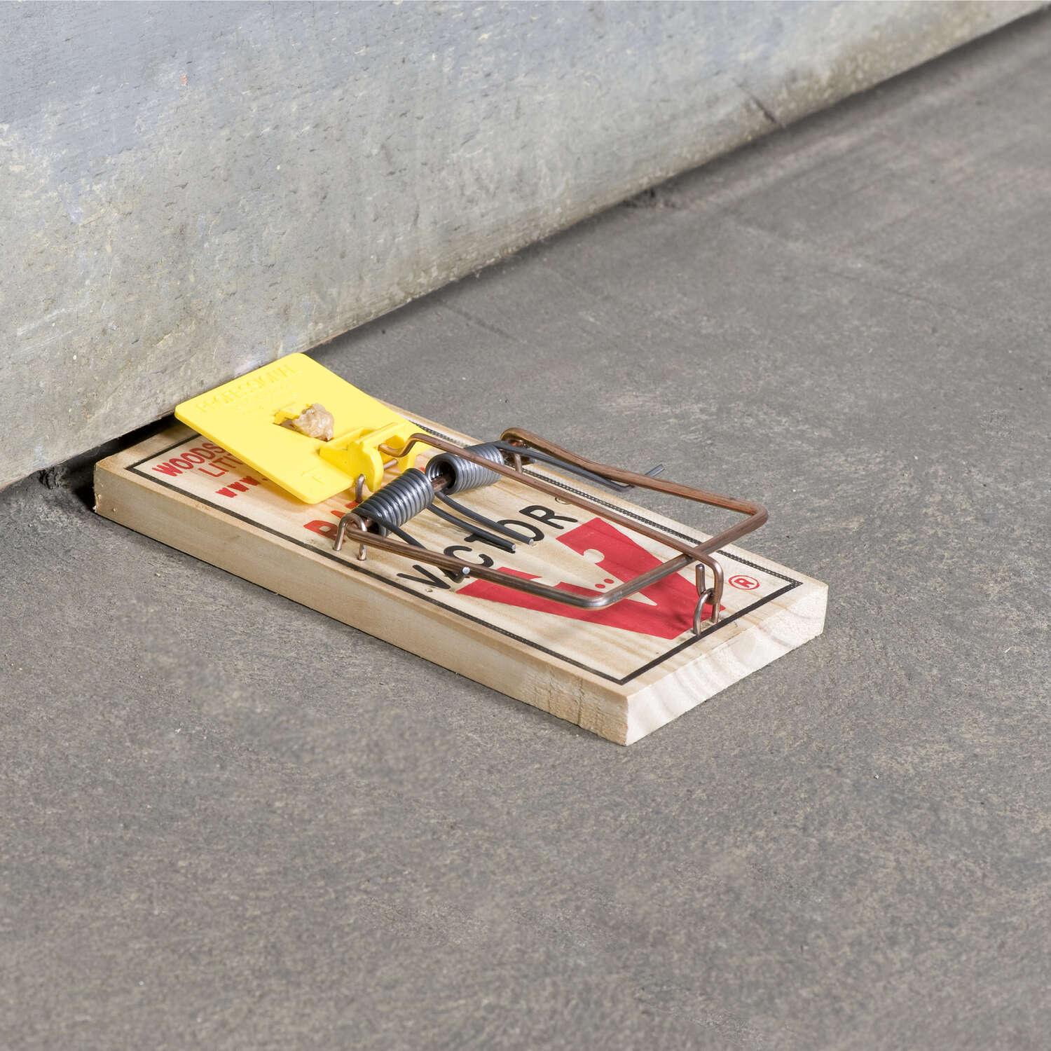 The original wood-based wire snap trap, the Victor Easy Set Rat Trap, provides immediate rodent control and is safe for household or business use. For effective rat control, each rat trap comes pre-baited with a large, expanded professional trip pedal. The large pedal of this rat trap is easily activated – both by rodent interest in food and through accidental contact as rats scamper across the floor – to ensure maximum trapping. Once a rodent triggers the pedal, the rat trap immediately springs closed to eliminate the pest on contact. The rat trap can then be easily disposed of for quick and clean removal. These traps require no chemicals or poisons, so they are an ideal rat control device for homes with kids and pets. Victor Easy Set Rat Traps are perfect for use anywhere in your home or business. For the best results, place the traps near signs of rodent activity or where you suspect rodent activity. These rat traps should be placed where rodents travel, such as along walls at 2 to 3-foot intervals.