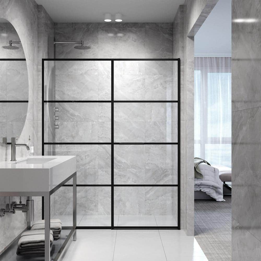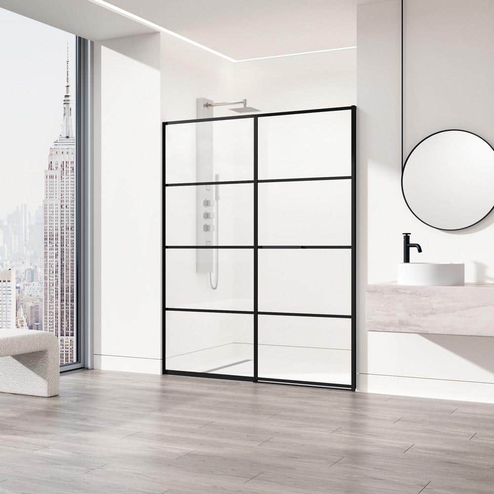 • Elegant Design: Matte black frame and clear grid glass exude modern sophistication, suitable for any bathroom style.
