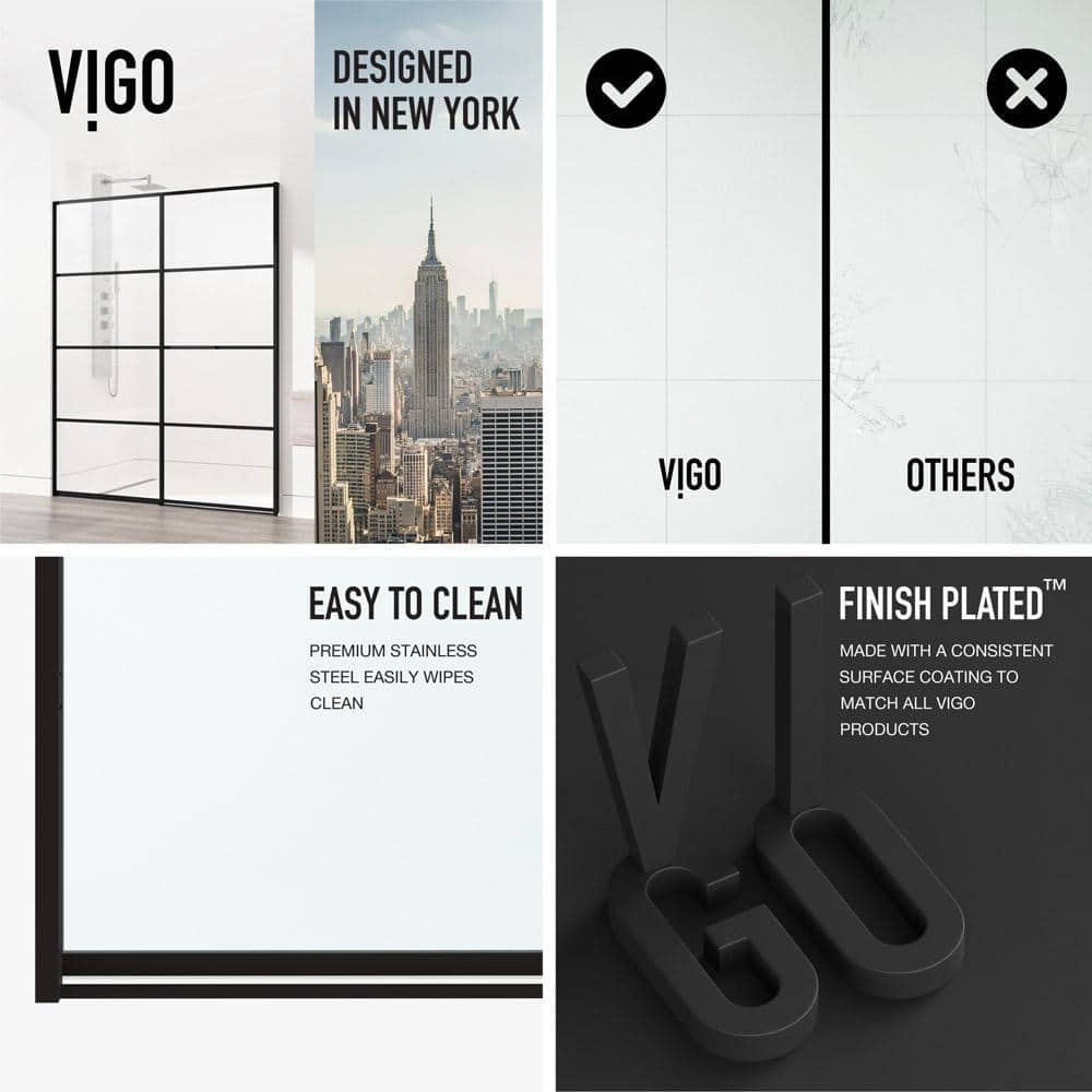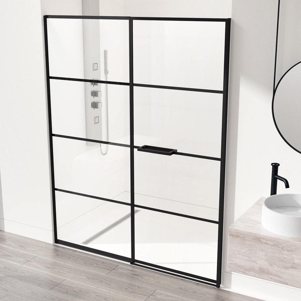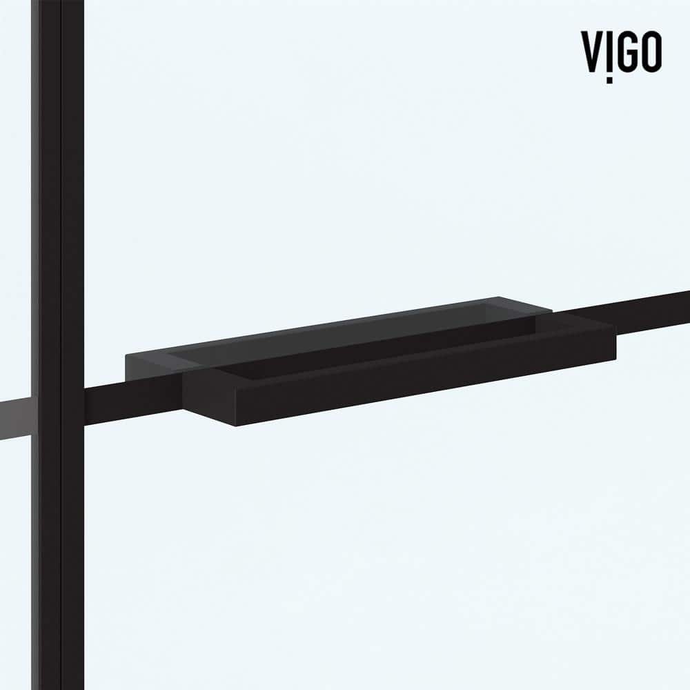 Enhance your bathroom with the VIGO Meridian Hinged Shower Door. Featuring a contemporary matte black finish and clear grid glass, this door offers a sleek, minimalistic design. The innovative MagnaLock technology ensures a secure, leak-free experience, and the reversible installation caters to your unique layout needs.