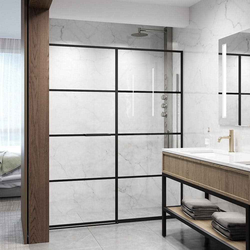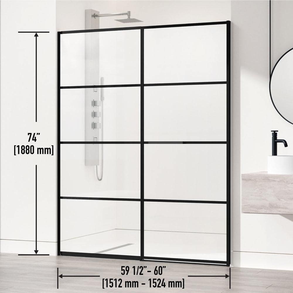 VIGO Meridian 59 1/2 to 60 in. W x 74 in. H Hinged Shower Door in Matte Black and Clear Grid Glass