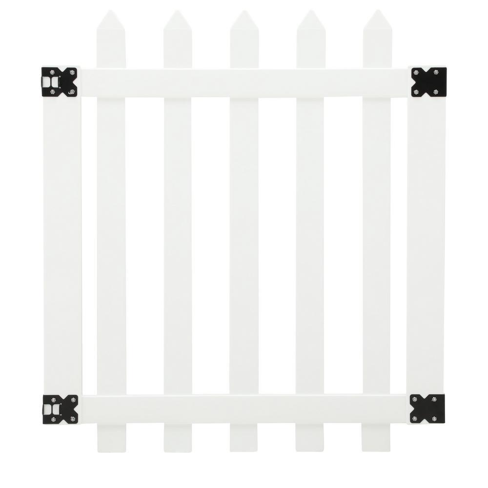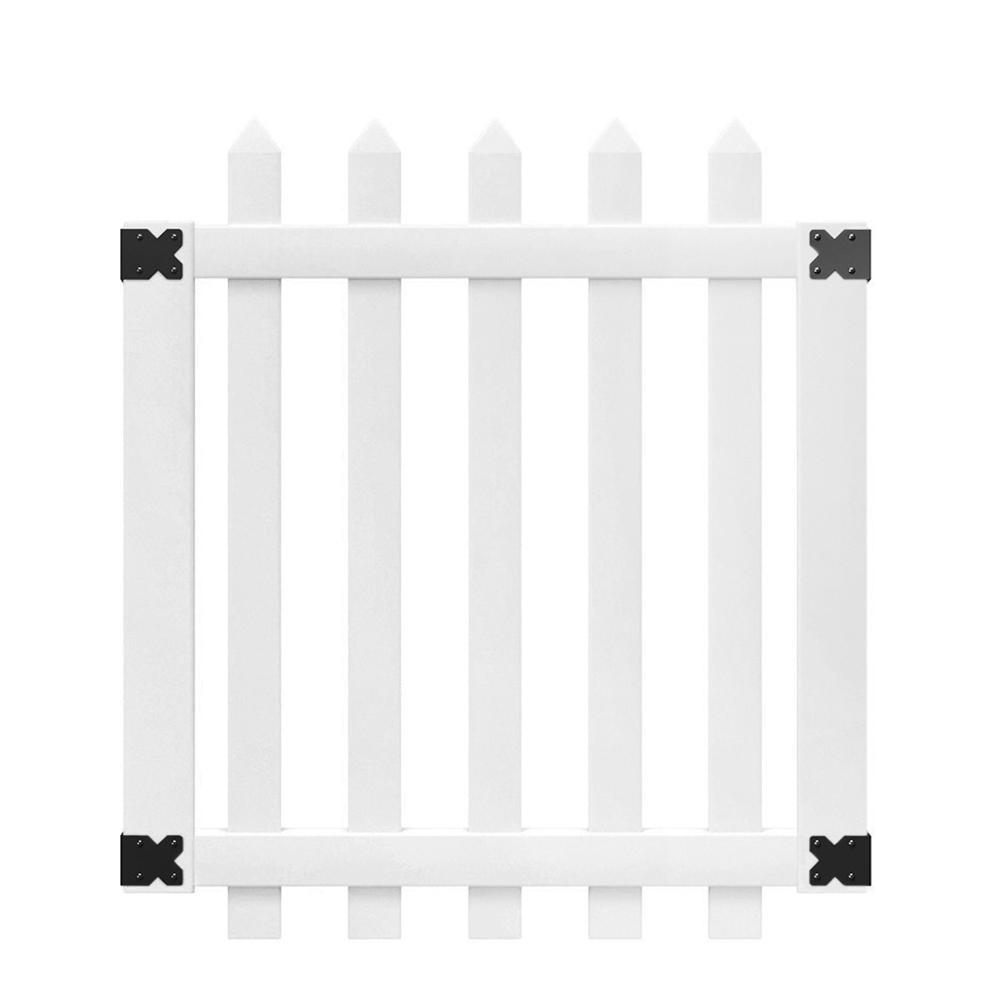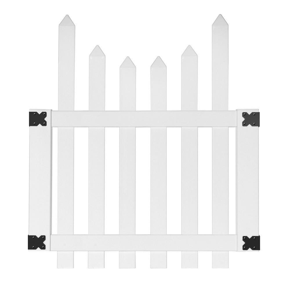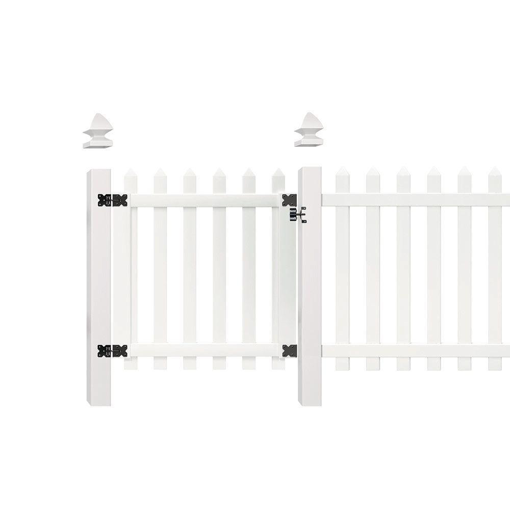 Glendale 3.5 ft. W x 4 ft. H White Vinyl Spaced Picket Fence Gate with 3 in. Pointed Pickets