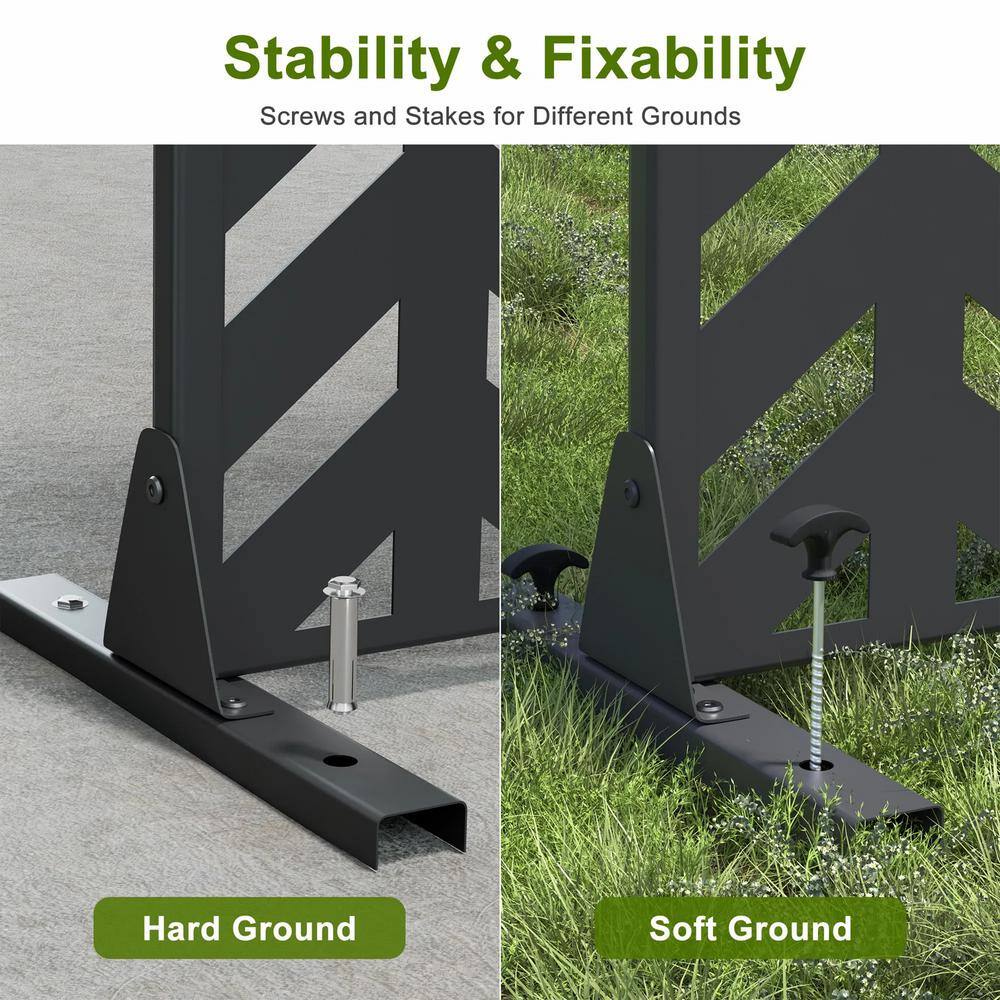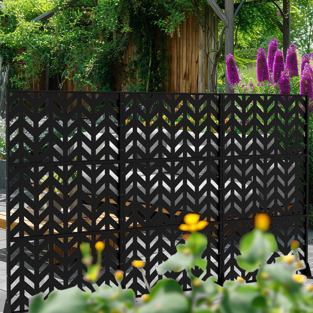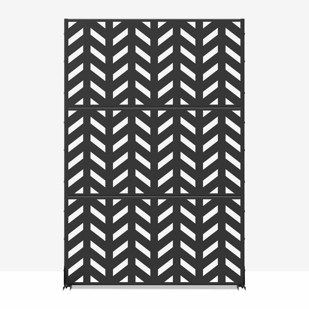 Cadeninc Metal Freestanding Privacy Fence Panel - Fishbone Pattern, Black | 3.92 ft x 6 ft