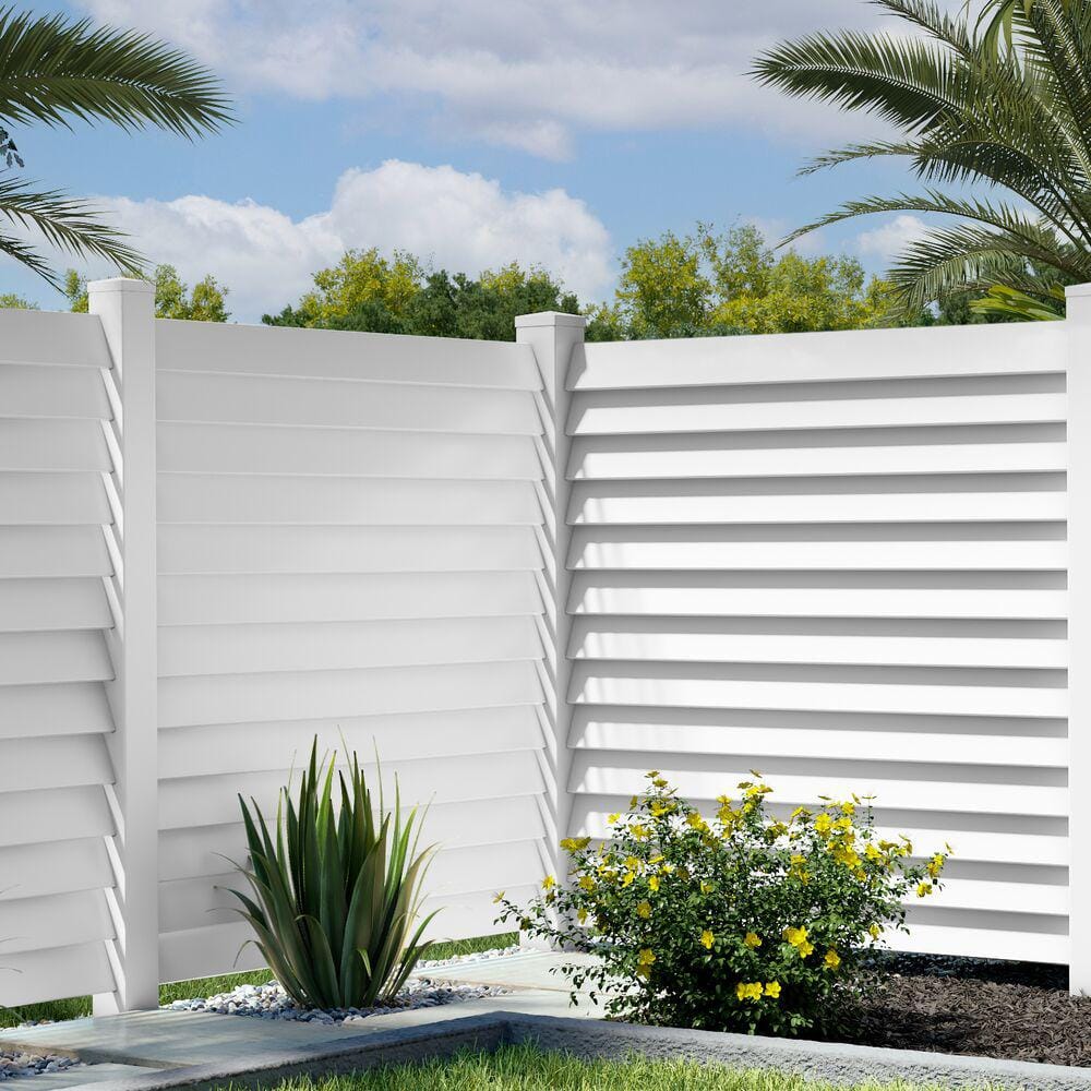 Enhance your outdoor space with the Barrette Outdoor Living Louvered Vinyl Fence Post—order now and redefine your landscape with style and strength.