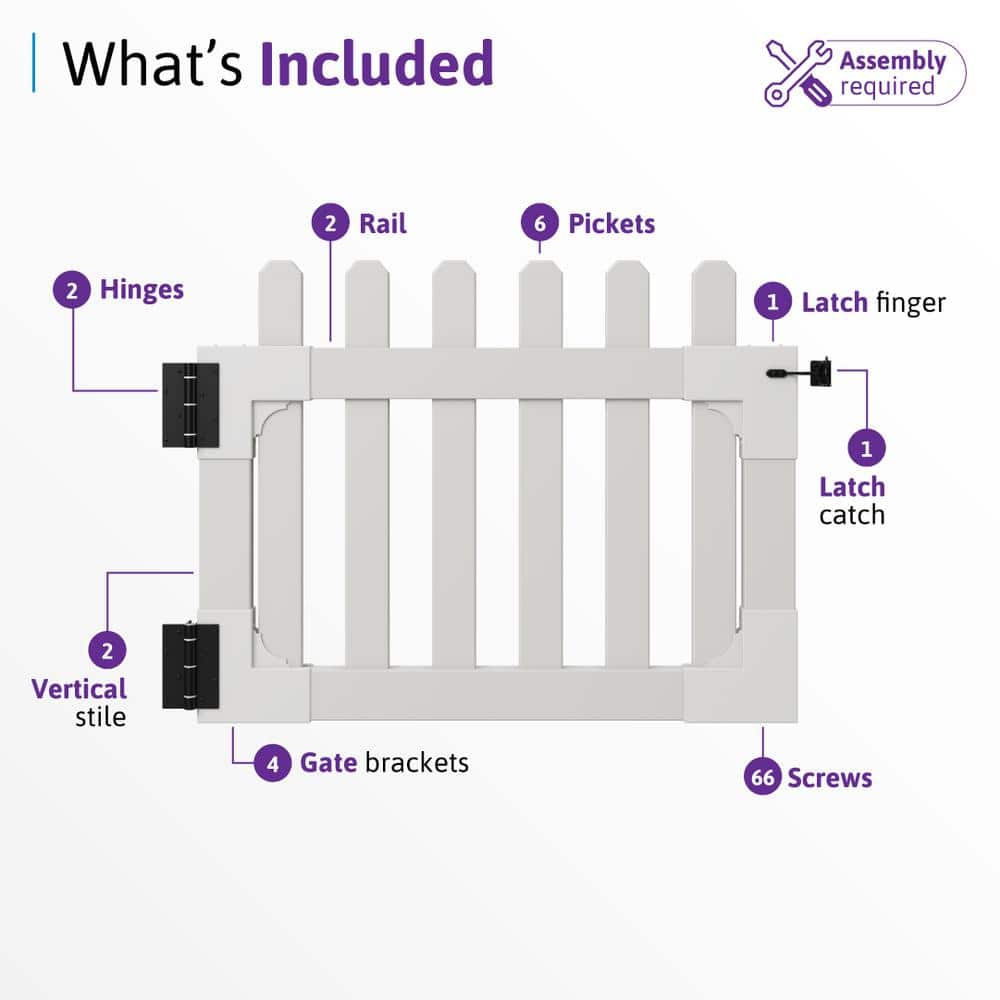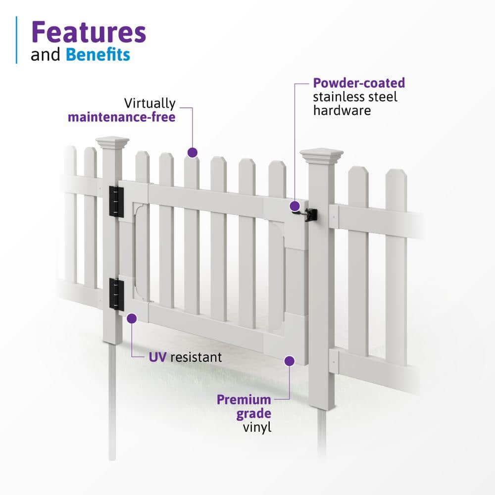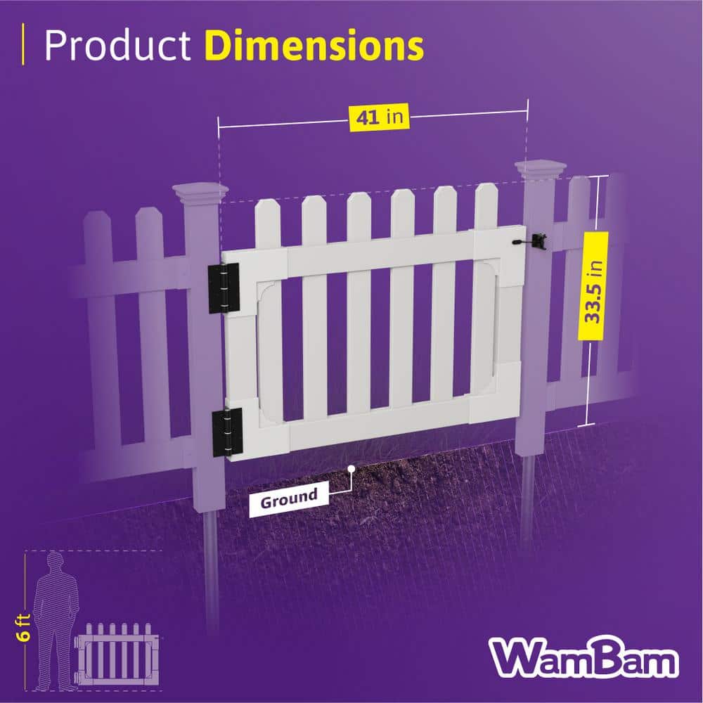 WamBam Fence 3-1/2 ft. x 2-5/8 ft. Newport Vinyl Picket Fence Gate with Stainless Steel Hardware