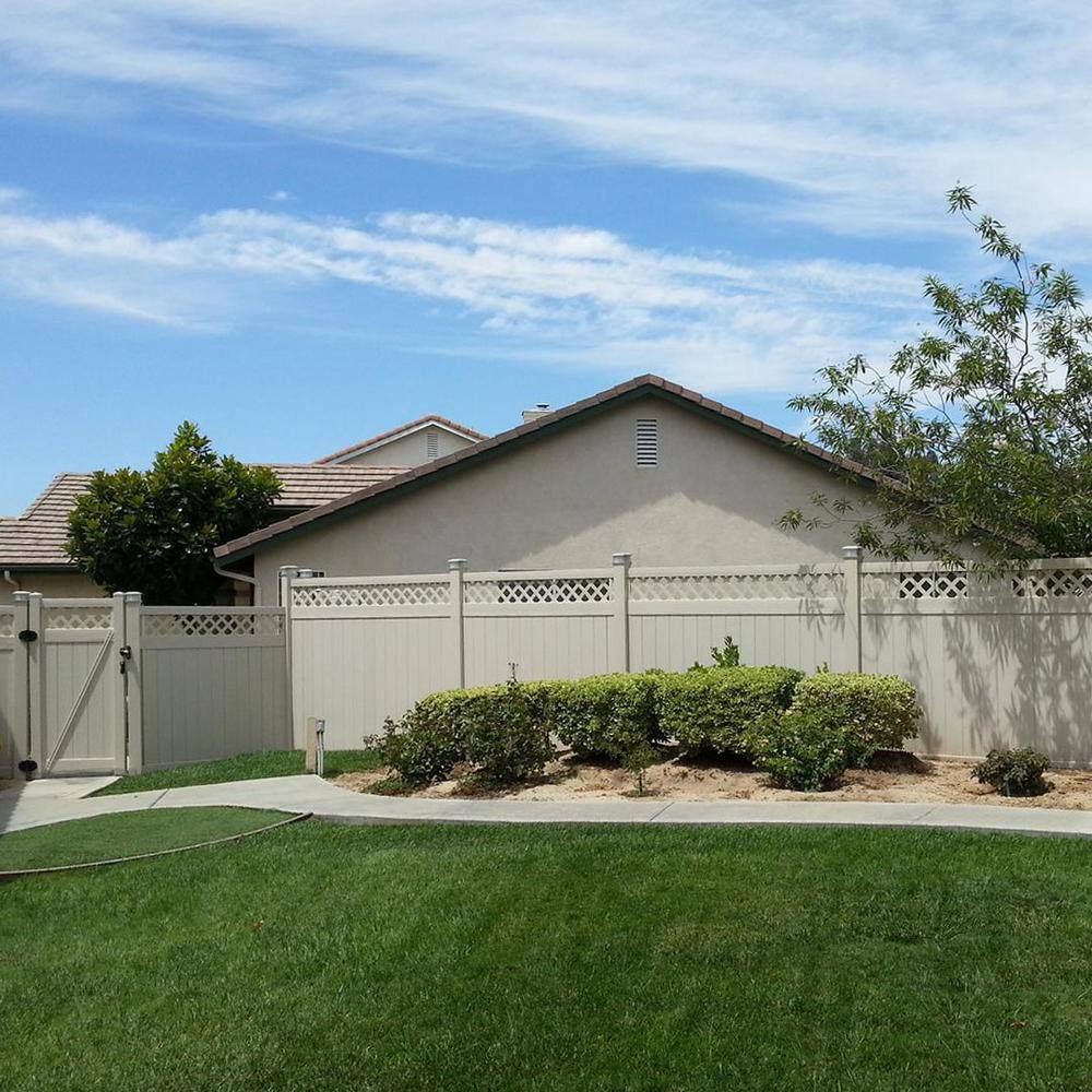 Tan Vinyl Privacy Fence Panel Kit with Lattice Top, 7x8 ft