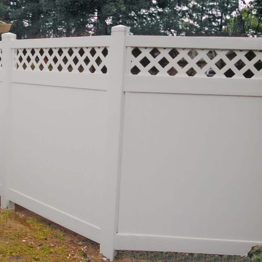 Elevate backyard privacy with the Weatherables Ashton vinyl fence panel, featuring a decorative lattice top. Built from commercial-grade, UV-protected vinyl with an aluminum-reinforced bottom rail, it delivers lasting strength and low maintenance for residential installs.