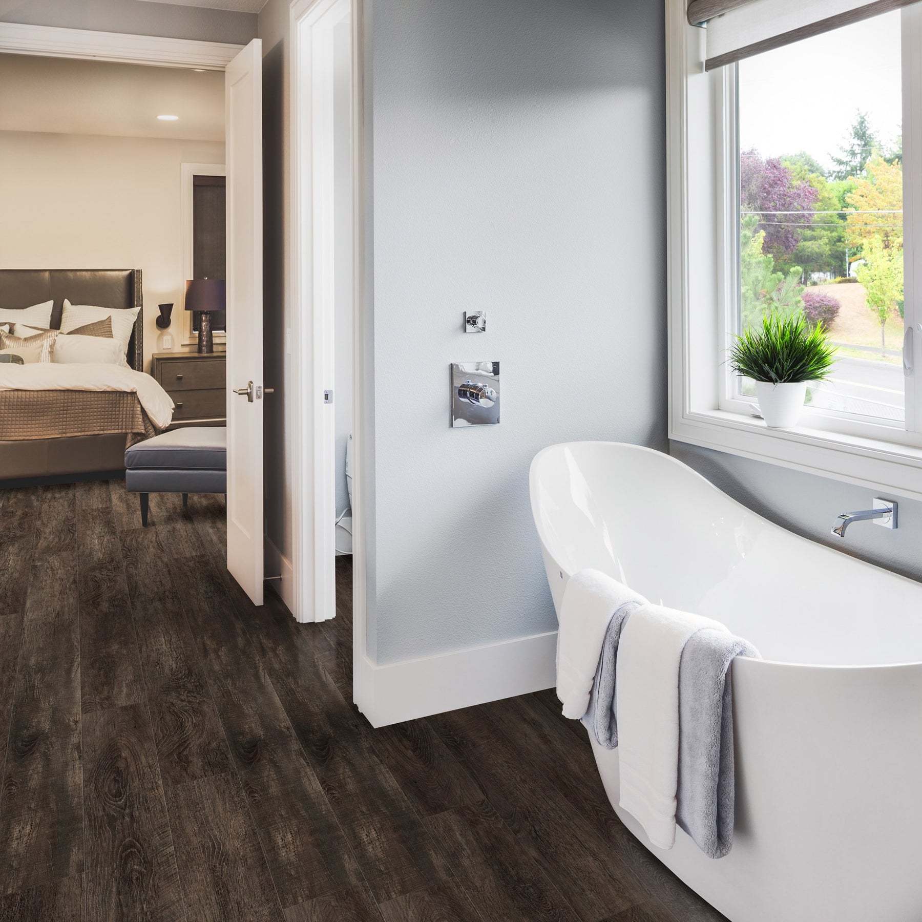 Shadowed Oak drapes the floor in a rich, espresso hue with nuanced grain that feels timeless yet modern. The wide 7-inch planks add visual calm and elongate the space, creating a luxe foundation for layered textures. Pair it with creamy upholstery and brushed metal accents for a sophisticated contrast. This resilient vinyl is the polished, practical choice for elevated everyday living.