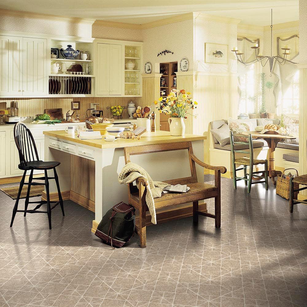 A: Sweep regularly and clean with Armstrong Once ‘N Done or a pH-neutral vinyl floor cleaner; no buffing or polishing needed.