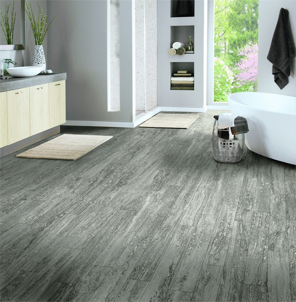 Osset Rock’s linear travertine pattern brings quiet drama to the room, layering soft gray striations with subtle movement. The low-gloss finish feels effortlessly refined, letting fixtures and textures shine. Pair it with matte black accents and warm wood cabinetry to balance cool tones with natural warmth. A chic, resilient foundation, it’s a go-to for luxurious everyday spaces.