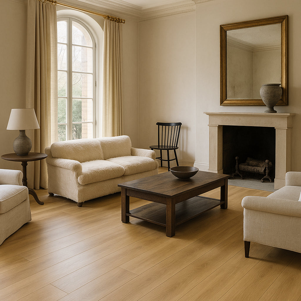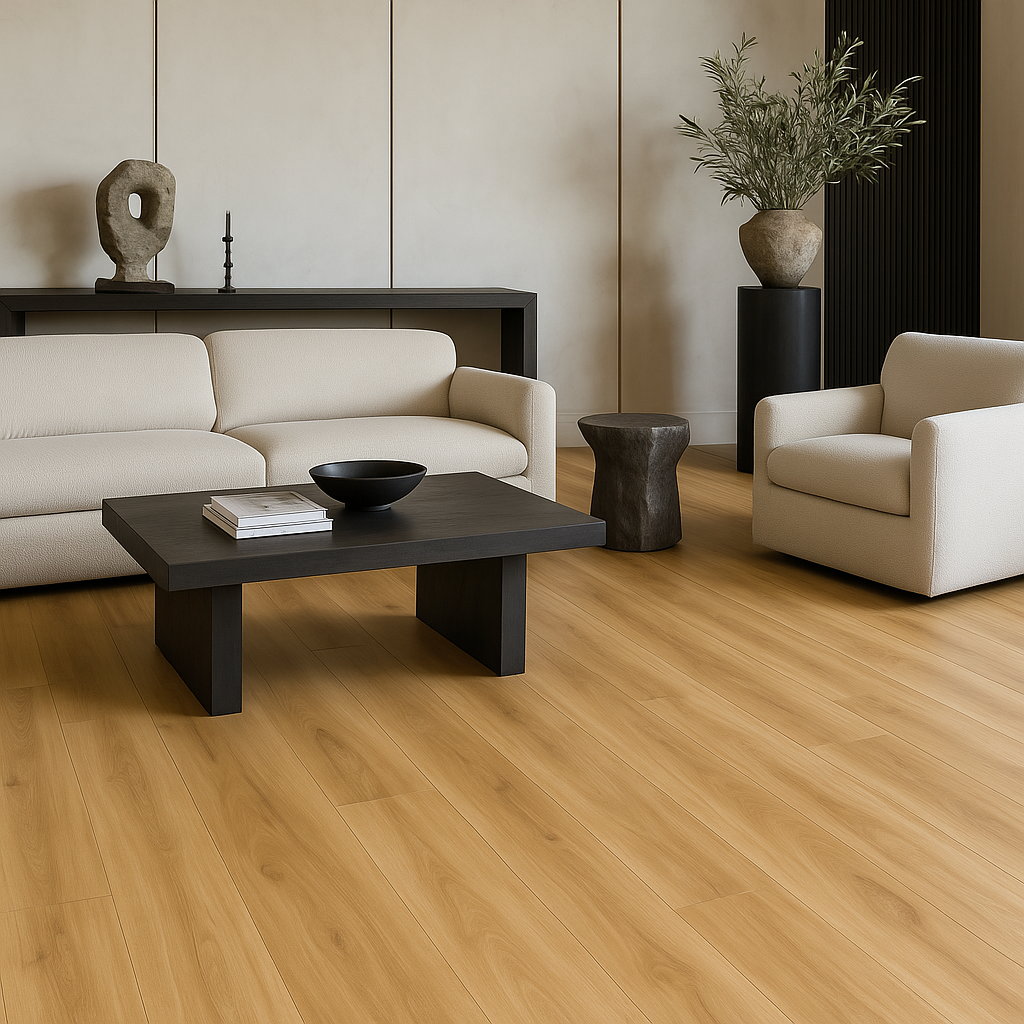The CALI Aqua Tough Premium Blonde Ale Vinyl Plank transforms any room with its natural wood-look design and rich, warm tones. Its waterproof and scratch-resistant features make it a practical yet stylish choice for high-traffic areas. Pair it with modern or rustic decor to create a harmonious and inviting atmosphere. This flooring is not just a surface—it's a statement of refined living.